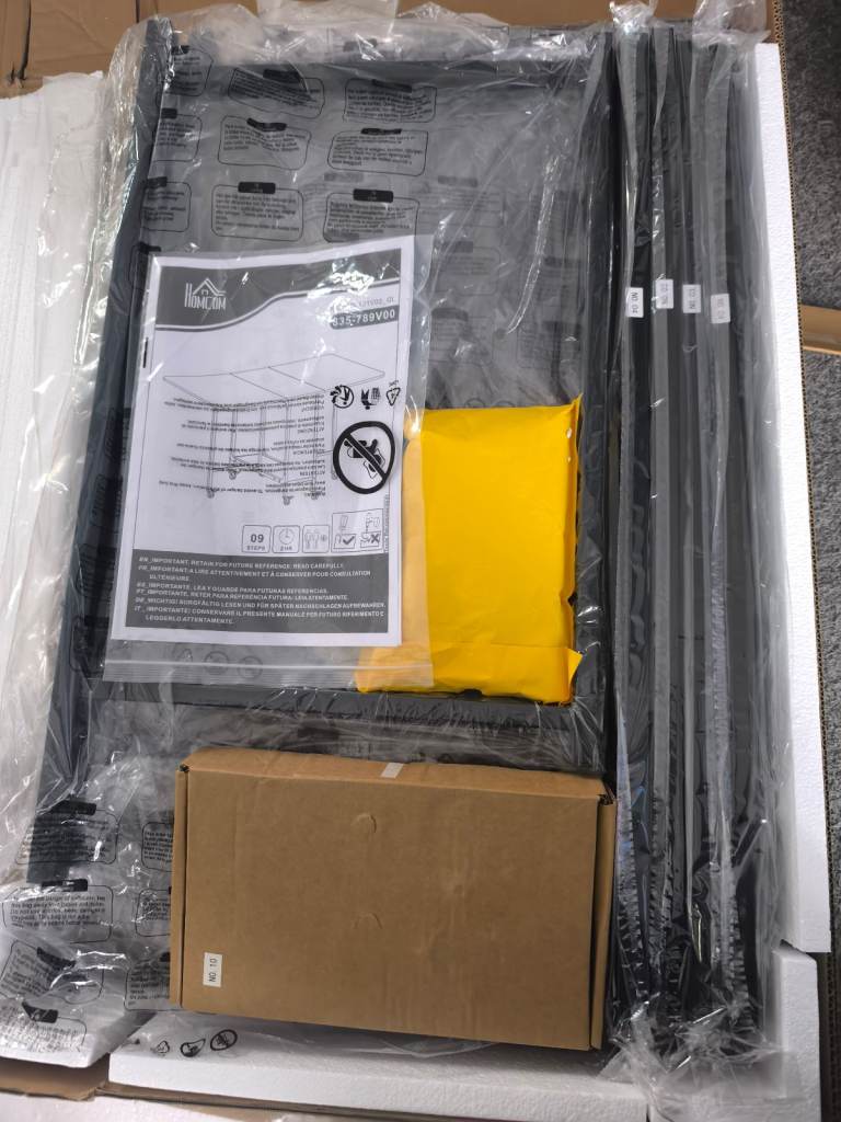Dimensions: Fully folded: 74H x 80L x 30Wcm. Half extended: 74H x 80L x 80Wcm. Fully extended: 74H x 130L x 80Wcm. Maximum load 50kg. Assembly required.