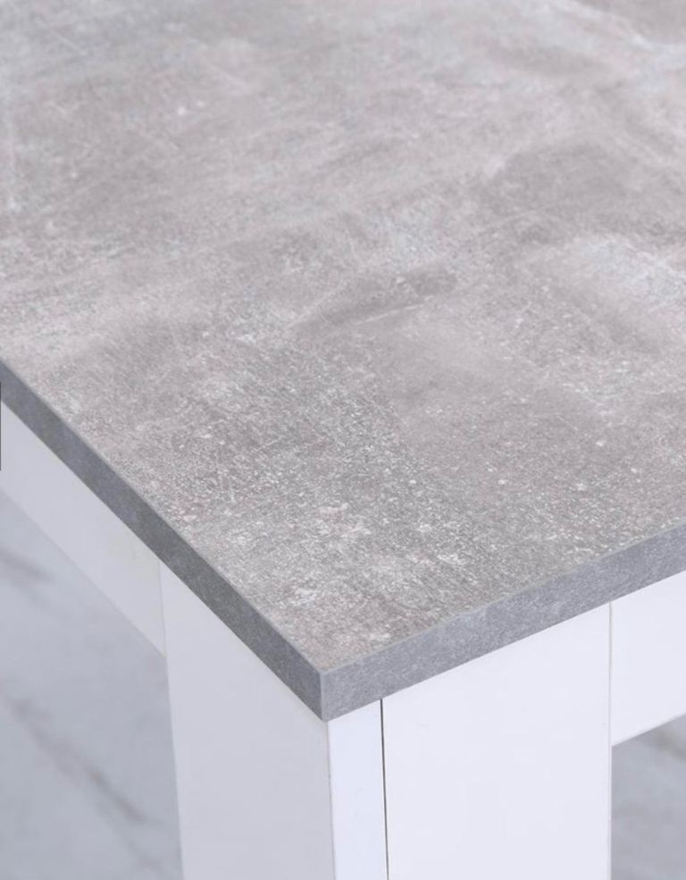 NEW - ORSA RECTANGLE CONCRETE EFFECT DINING TABLE WITH HIGH GLOSS WHITE LEGS