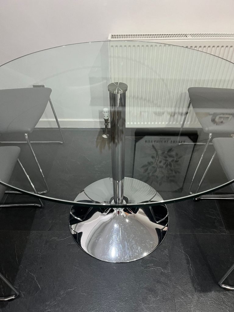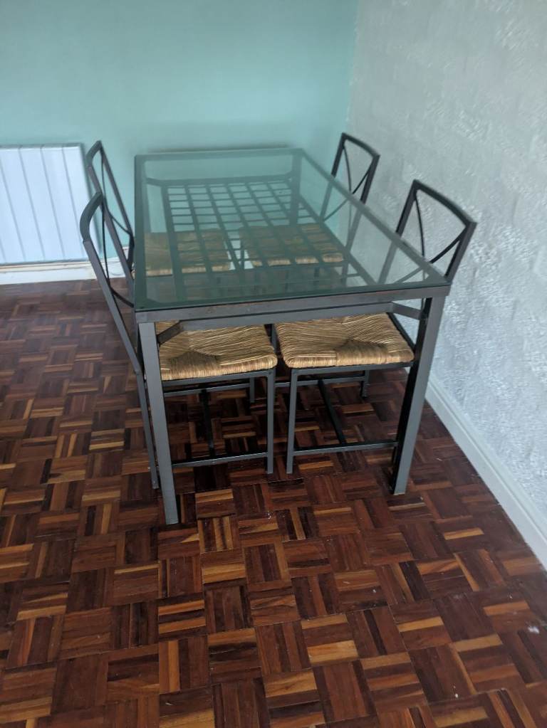 Solid wood dining table + 4 chairs in excellent condition.