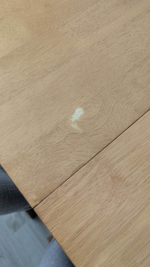 1 small defect visible at the top of the table due to accidental nail polish remover use.