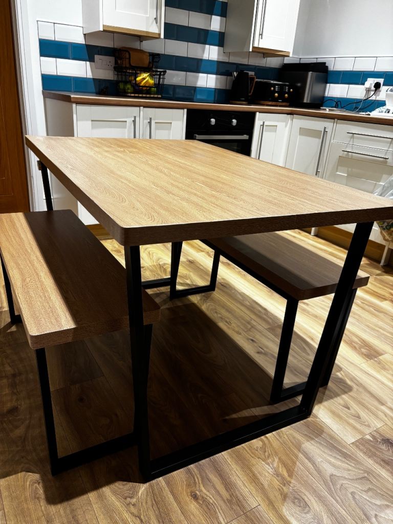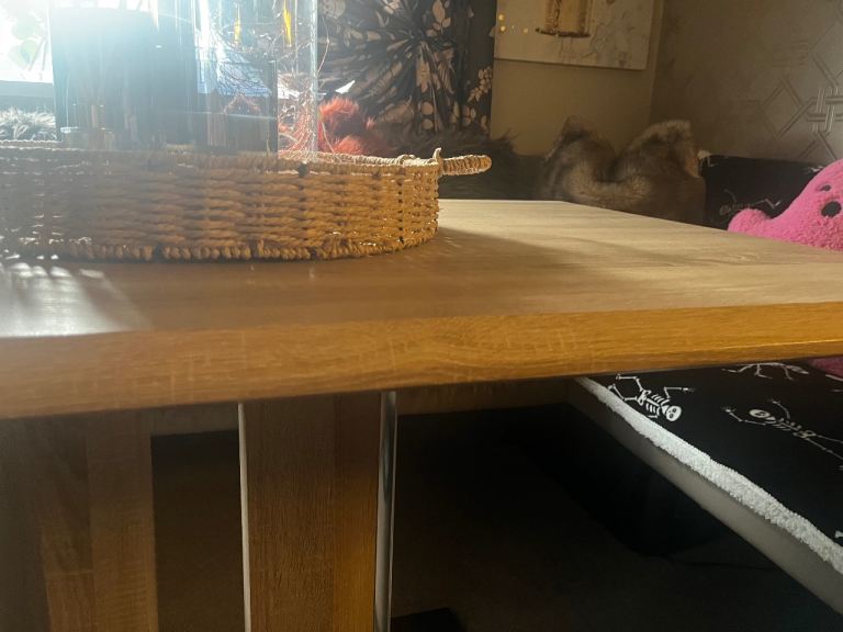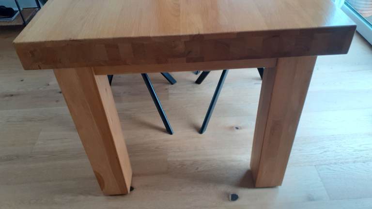 Solid light oak dining table. Seats 6. 180 X 90cms. In good condition. Legs can be removed for transport. Buyer collects.