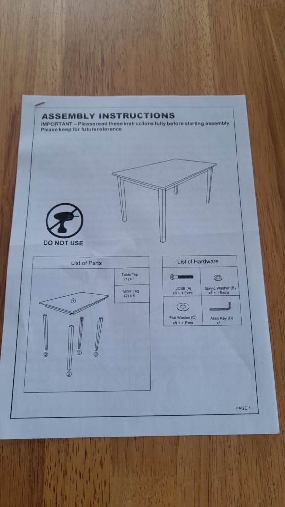 Large Solid Oak table. Sit 6 easily. 55" X 31.3/4" - 29.5" height. New as seen with instructions on dismantling and assembly.