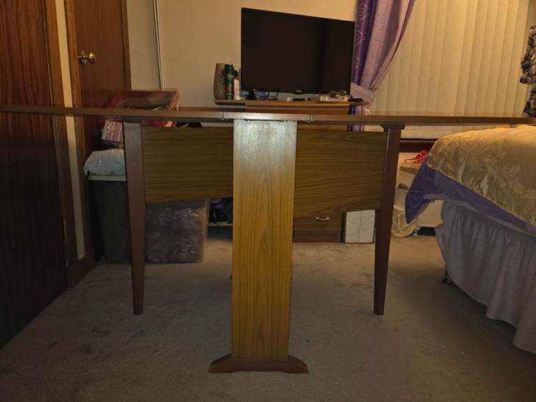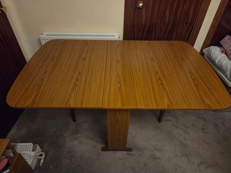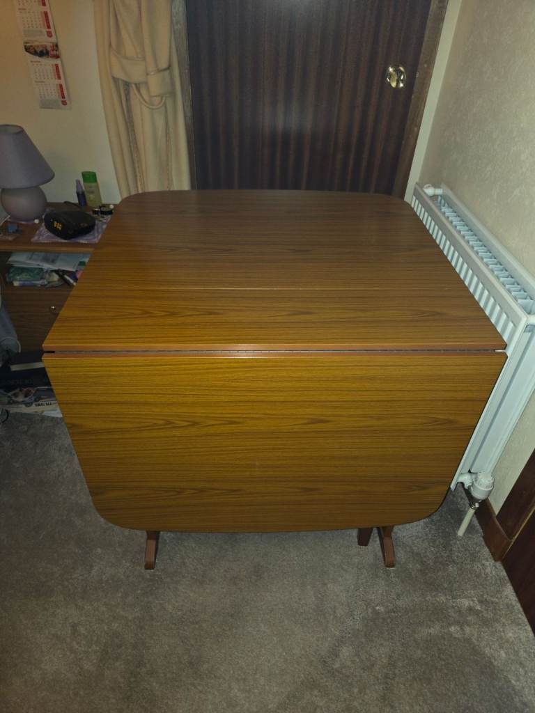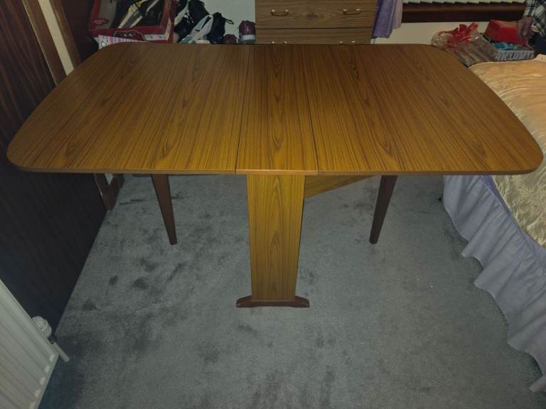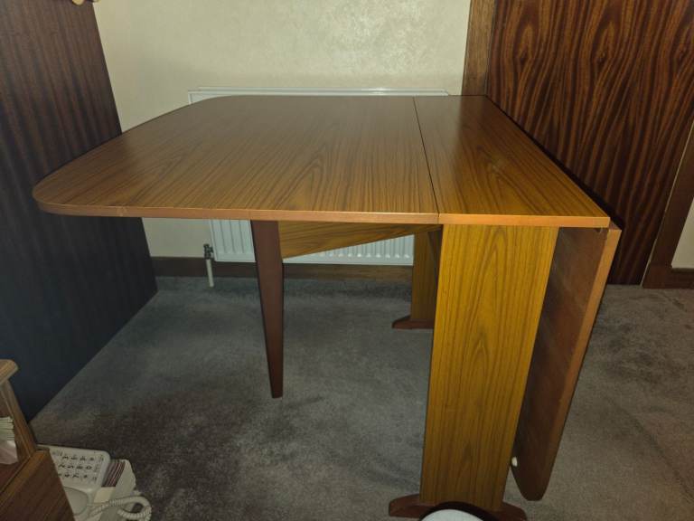 Posting for 2+ monthsPRICE REDUCTION!! Retro 1970's Schreiber Wood Effect Drop Leaf Gate Leg Dining Table With 4 Chairs