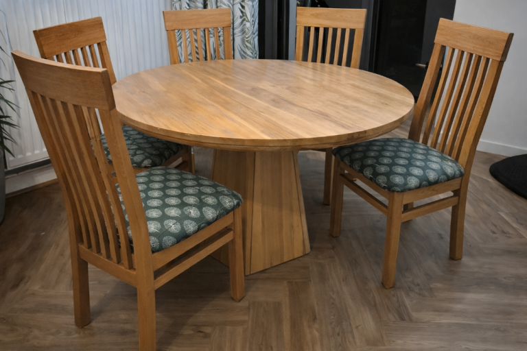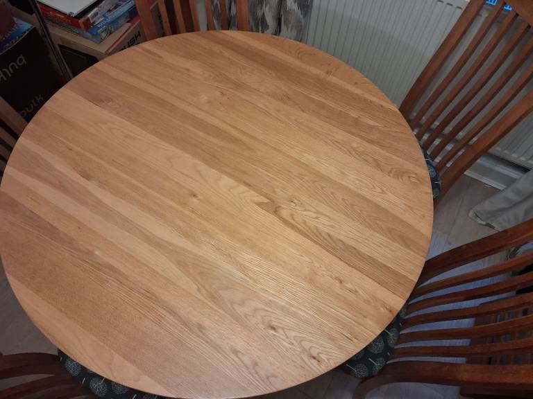 Provence oak table 110cm diameter plus 4 solid oak chairs