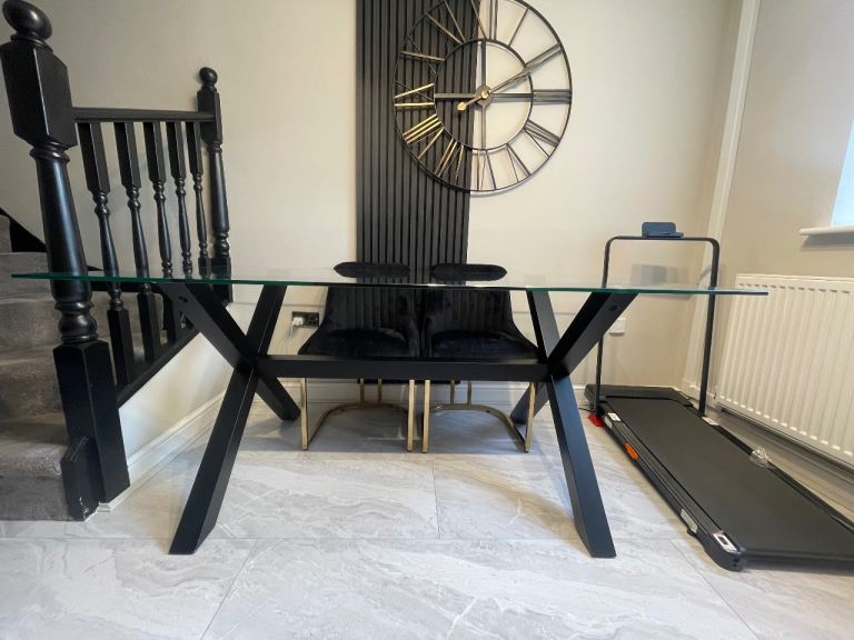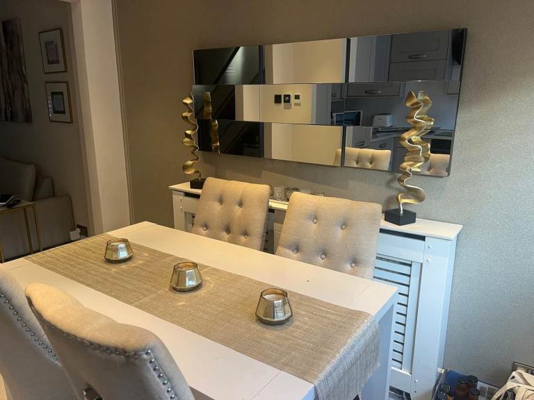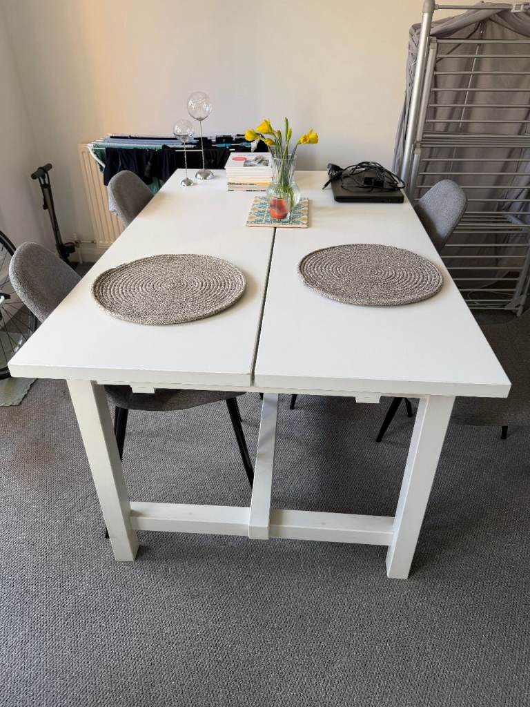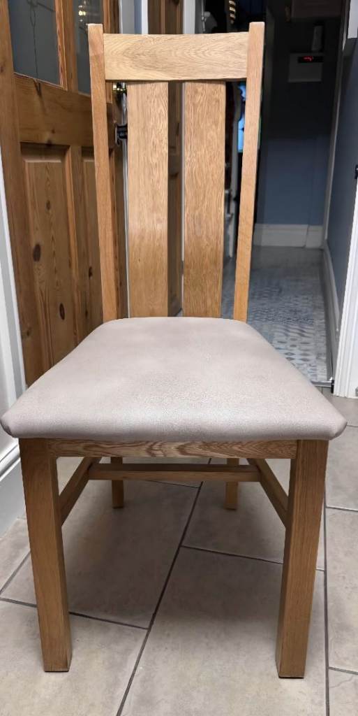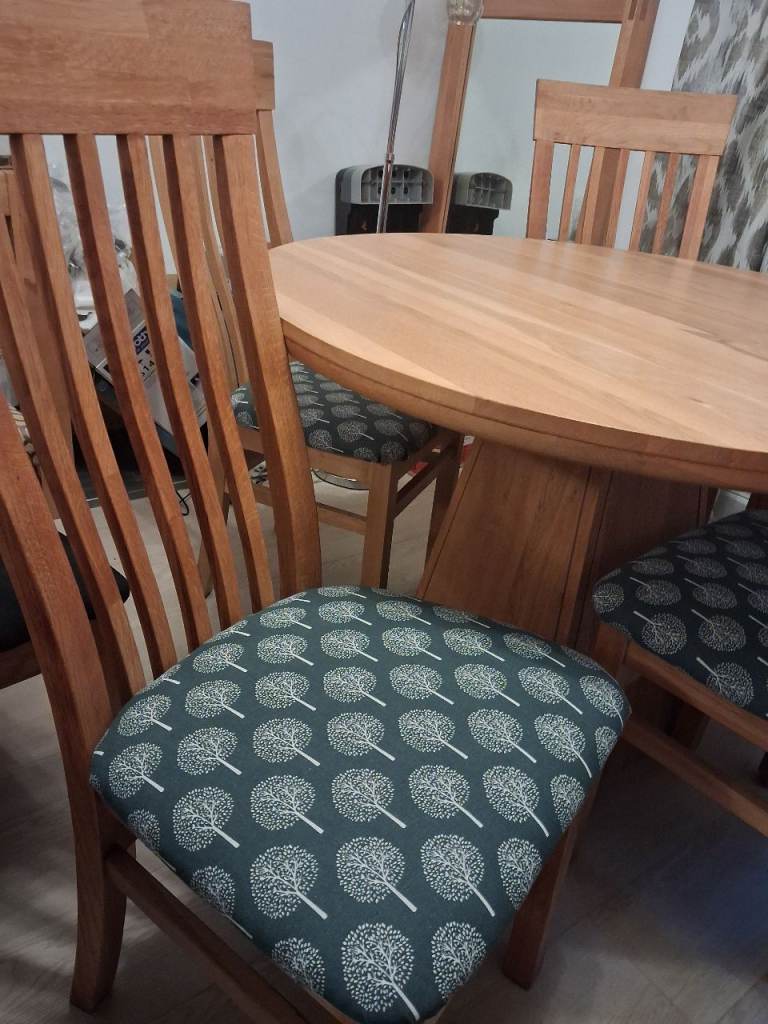 Table originally from Oakfurniture land top can be removed to transport available with choice of chairs see pic 4 taupe leatherette or pic 5 grey Mulberry tree print vgc £260