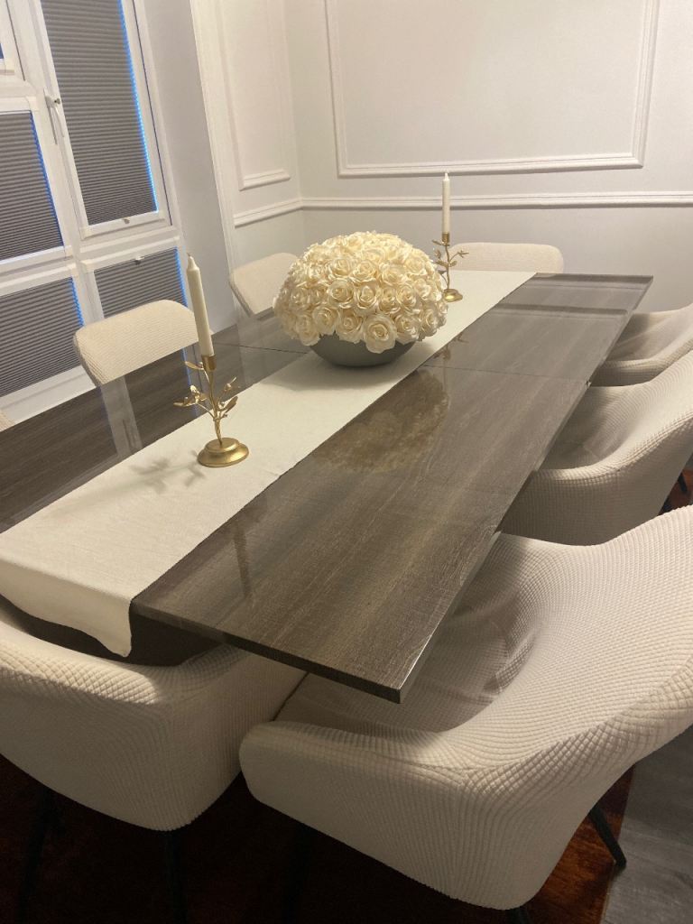 * Beautiful sturdy table that seats up to 6 people as it is slightly wider than usual at 90cm.