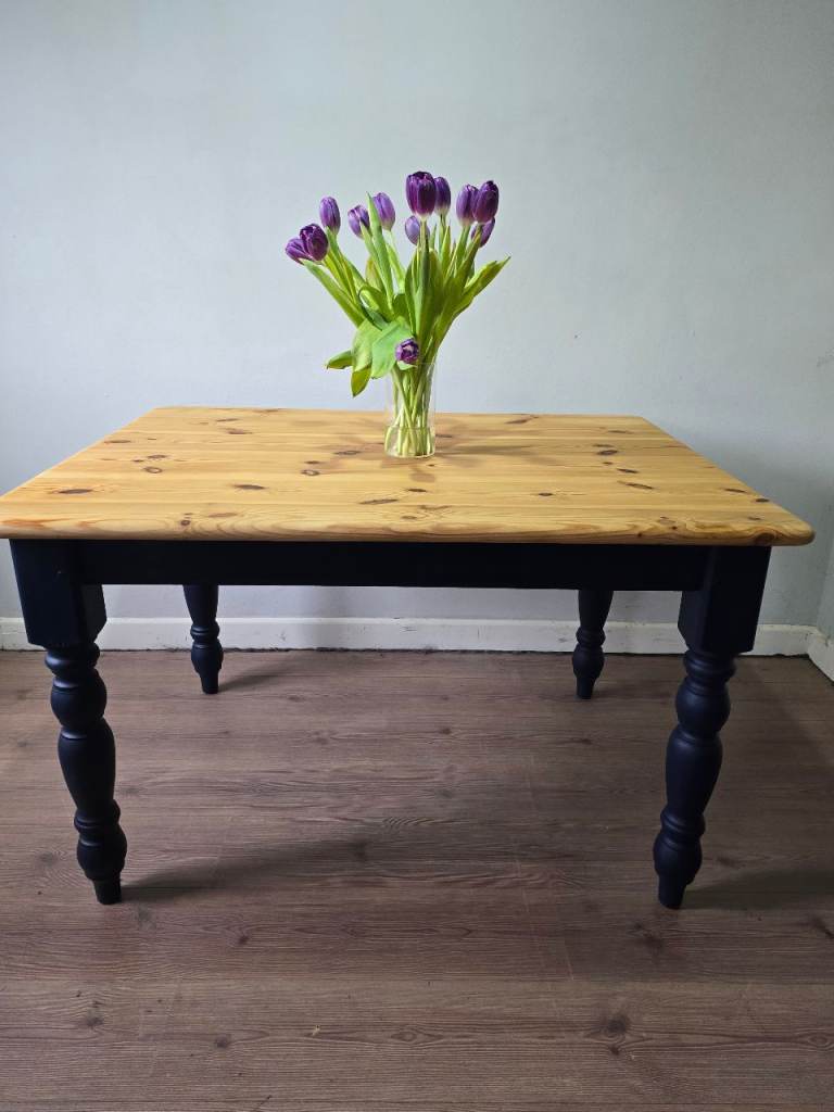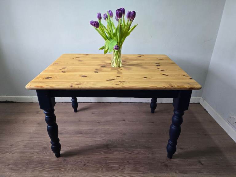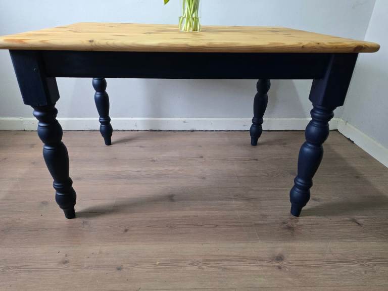 REFURBISHED Pine Rustic Farmhouse Dining Table Navy Blue - Possible Local Delivery