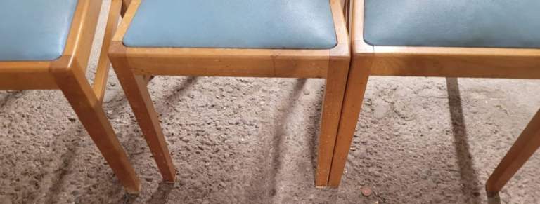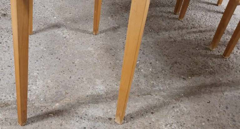 Hardly any marks at all on the original vinyal seat pads or formica top and only light signs of wear on the oak wood frames this set really is a great looking quality item!