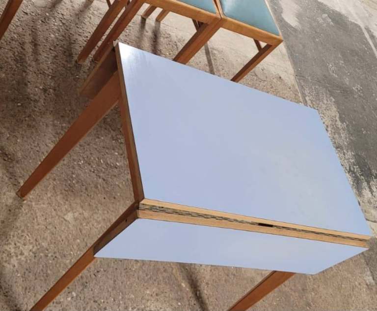 Retro Blue Formica Drop Leaf Kitchen Table & 4 X Matching Chairs