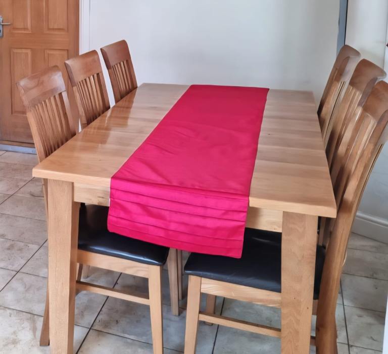 • Material: Solid wood (likely walnut or similar hardwood veneer finish)