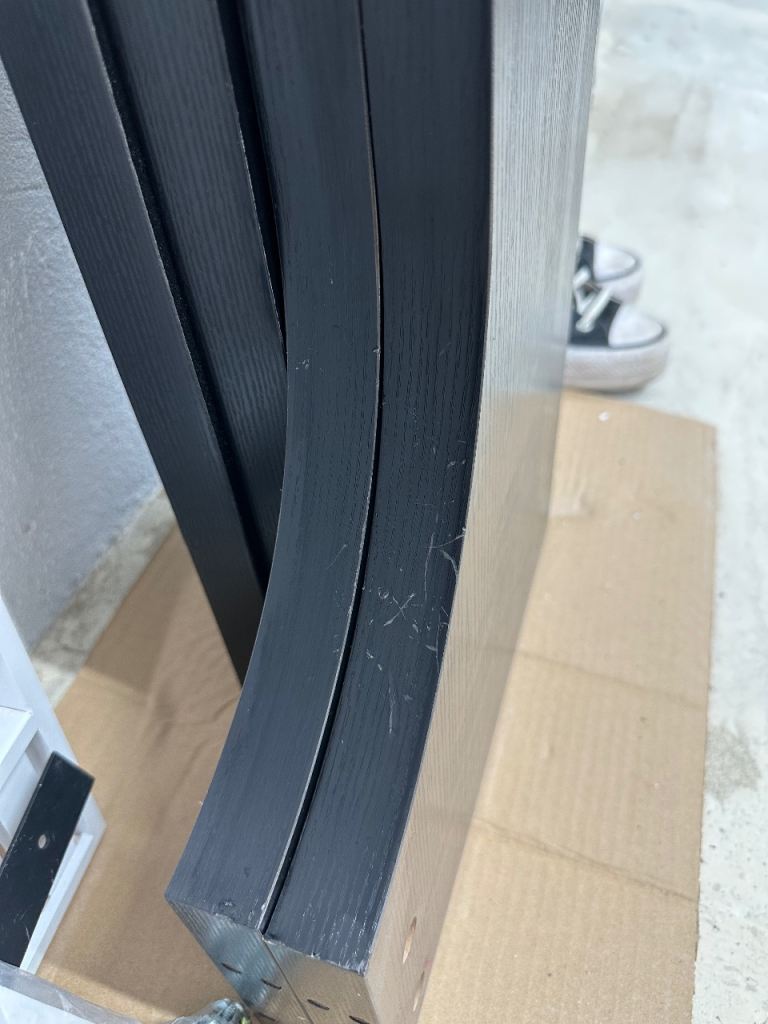 There are some minor signs of use, but overall it’s been well looked after. Please check the photos for details. The small scratch on the curved area is on one of the table legs. Already dismantled.