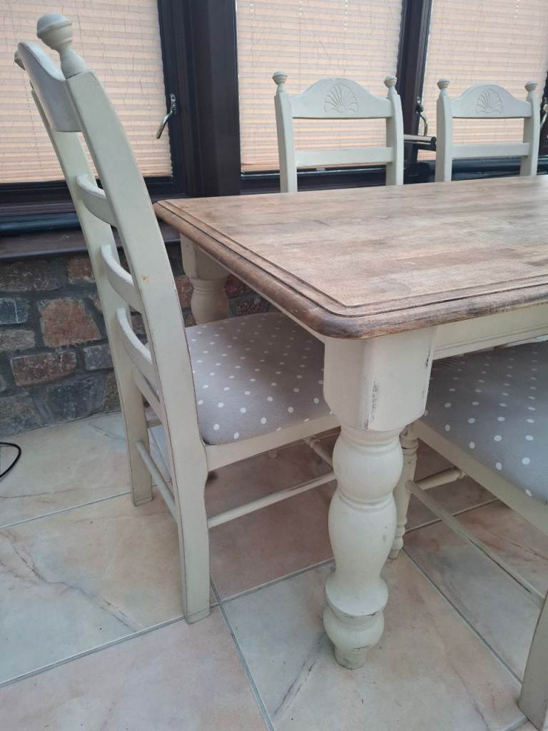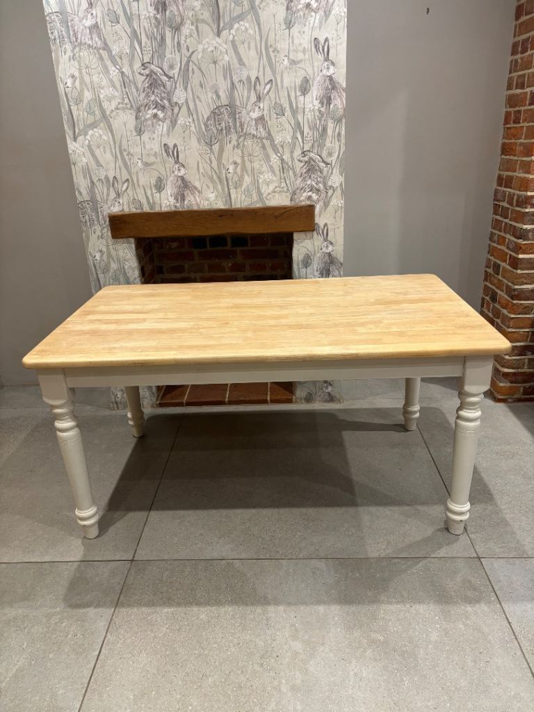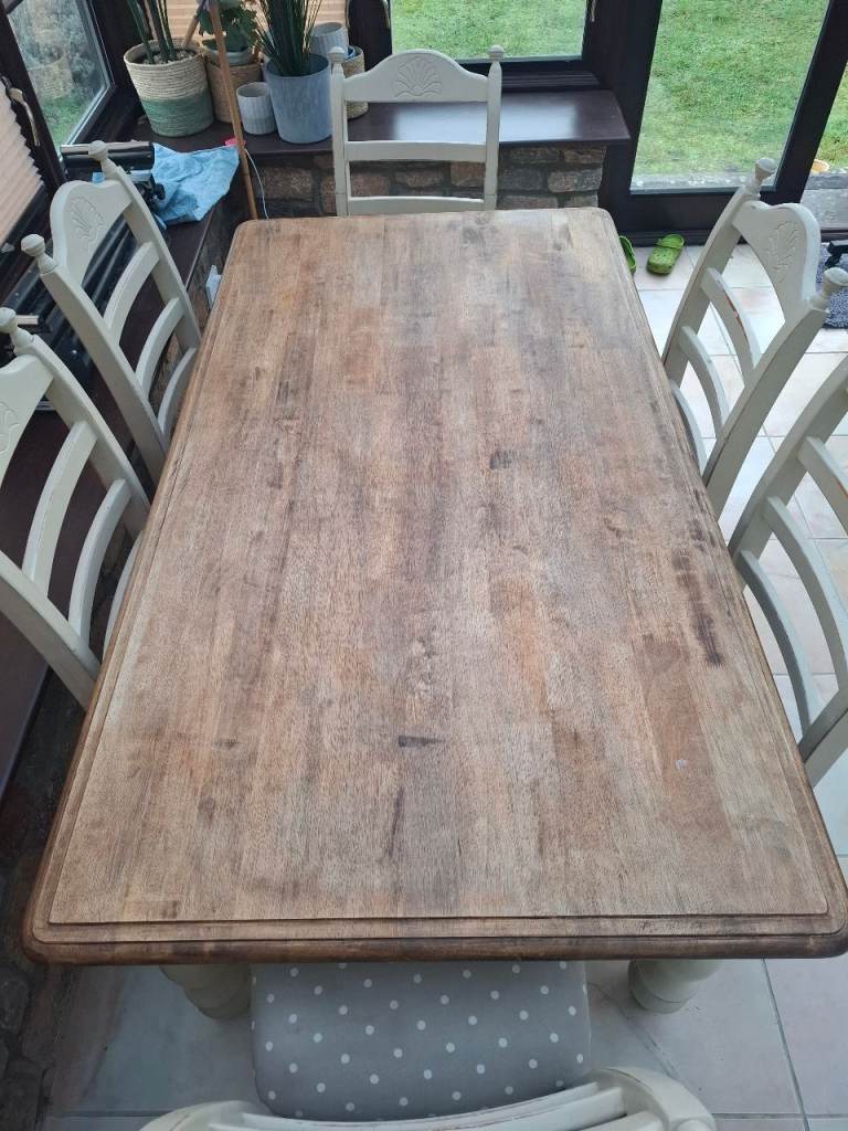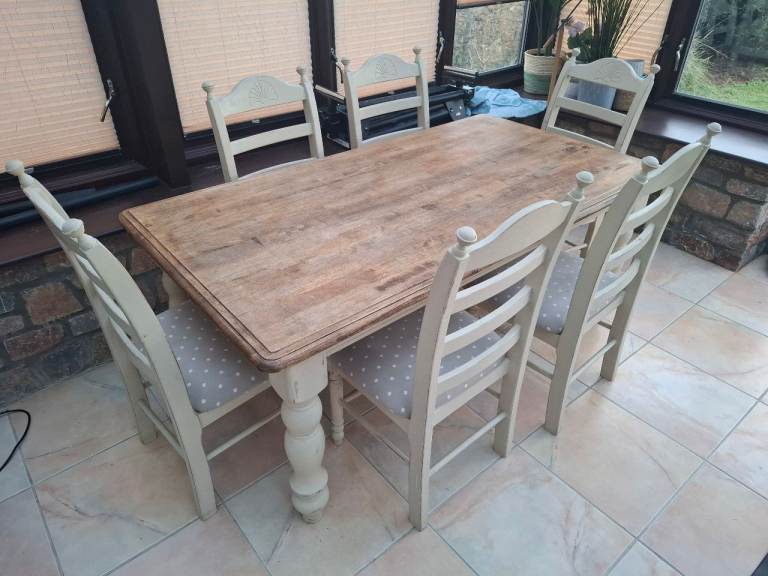 Posting for 8+ yearsRustic Oak With Chalk Paint Farmhouse Dining Table & 6 Chairs (Clevedon)