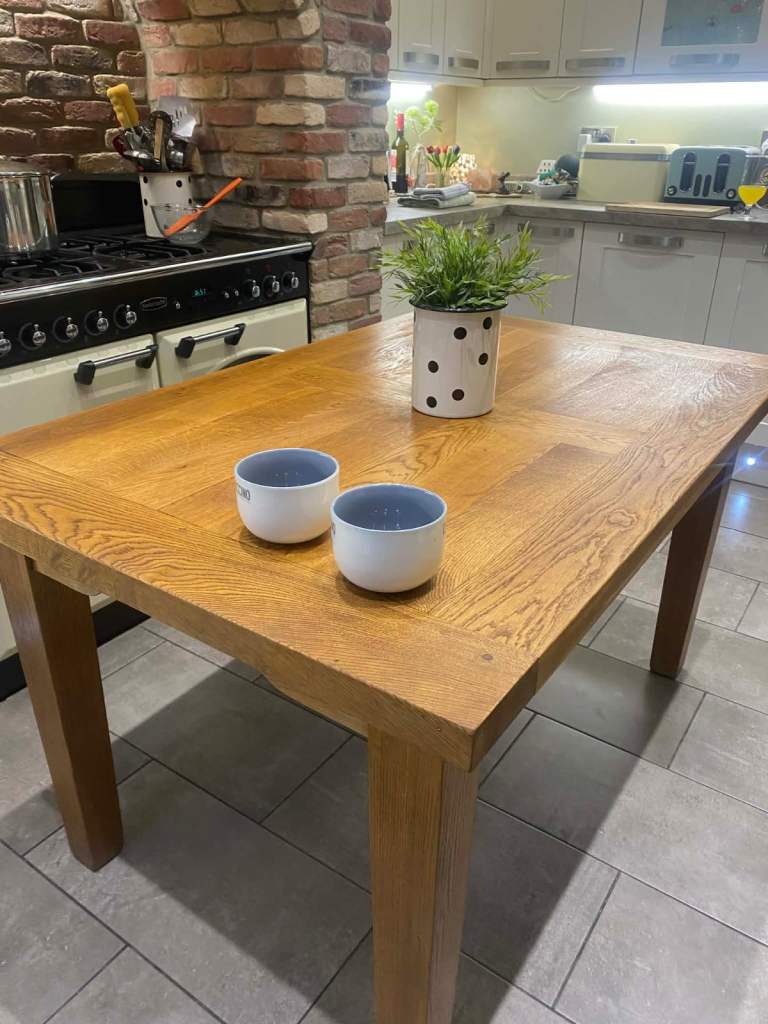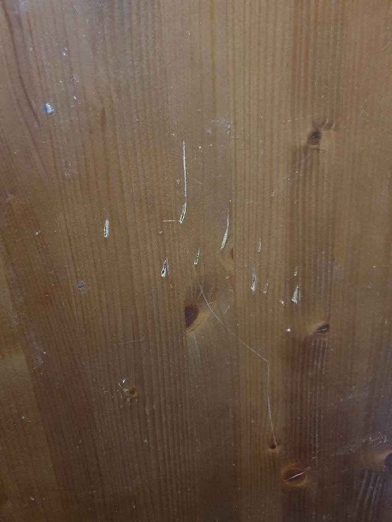 Pine table. Good for an upcycling project. Surface marks as shown in photo.