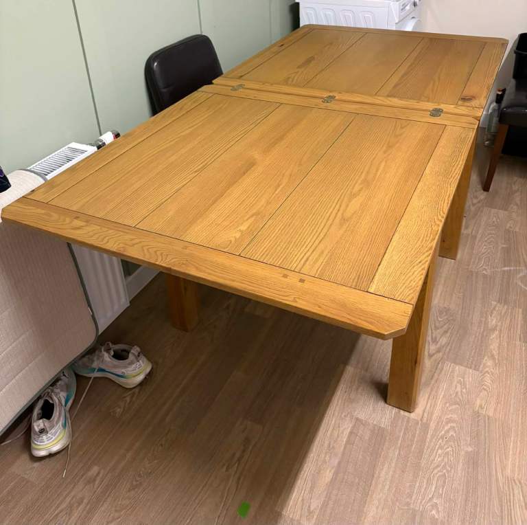 Selling our table to make way for my DIY kitchen Island if anyone knows of anyone looking. Solid table and in great condition. Could do with being sanded on the top and varnished but extendable part is in great condition as only used at Xmas time