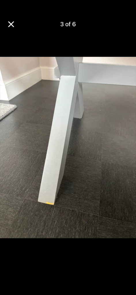 Good condition, all solid oak. Legs grey. See photos for sizes and dimensions.