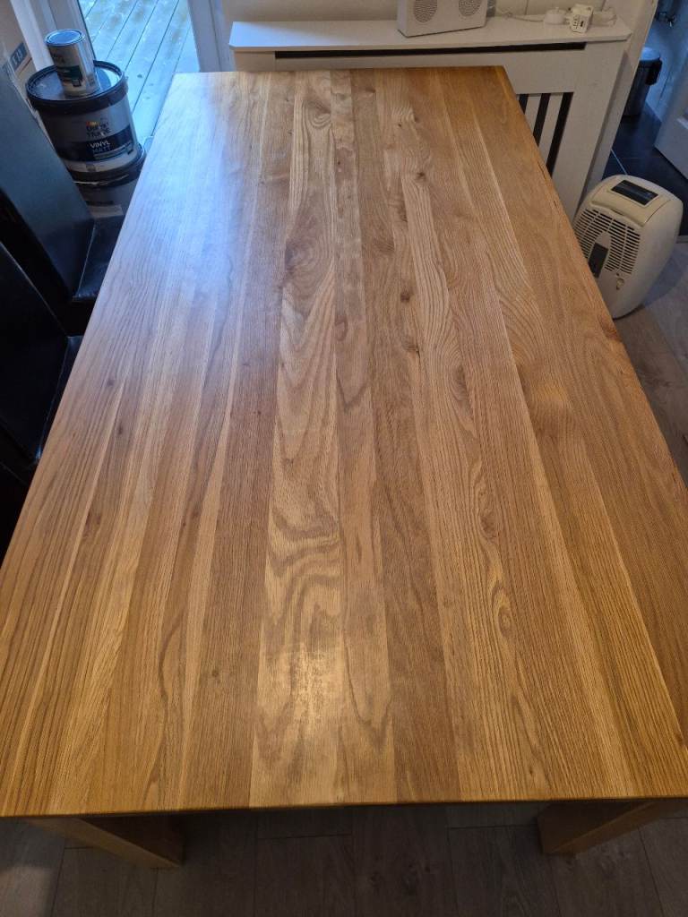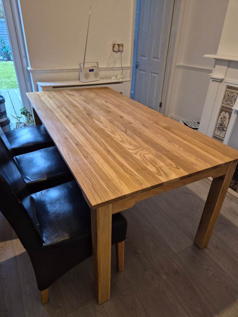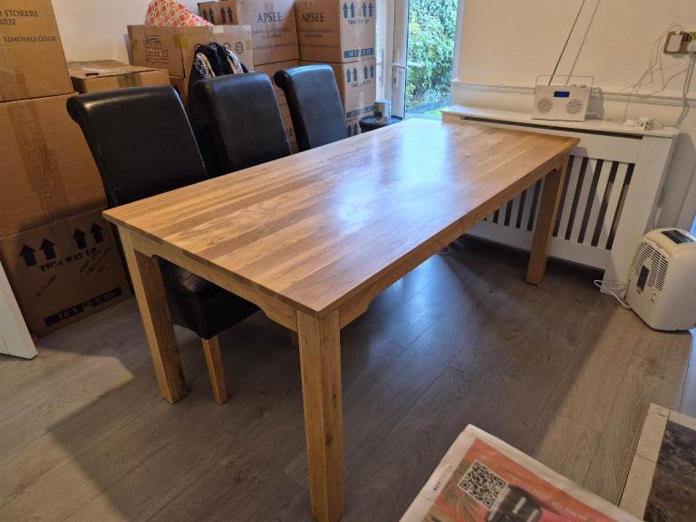 Solid authentic oak dining table 180x90 pristine condition. It doesn't fit in our new house so have to sell. Sits 6 people. £298 or make me a good offer.