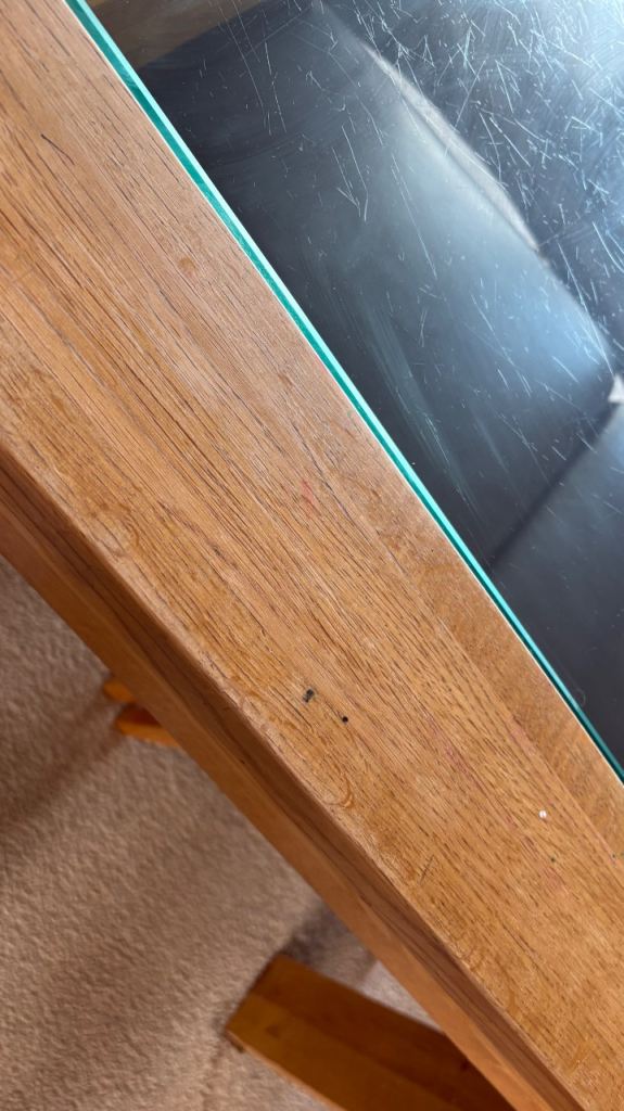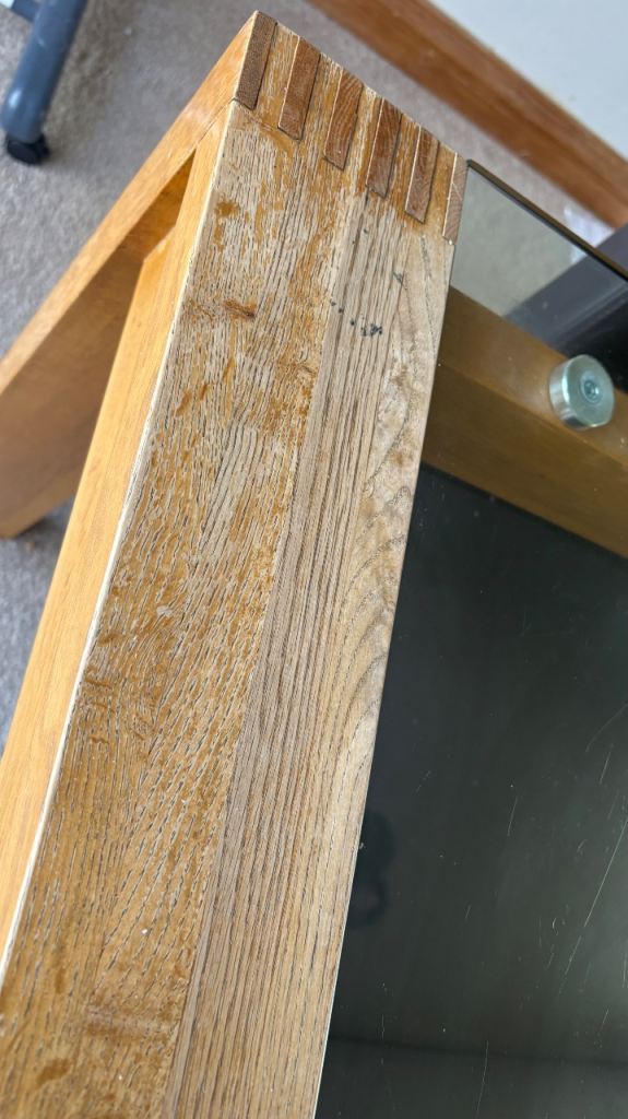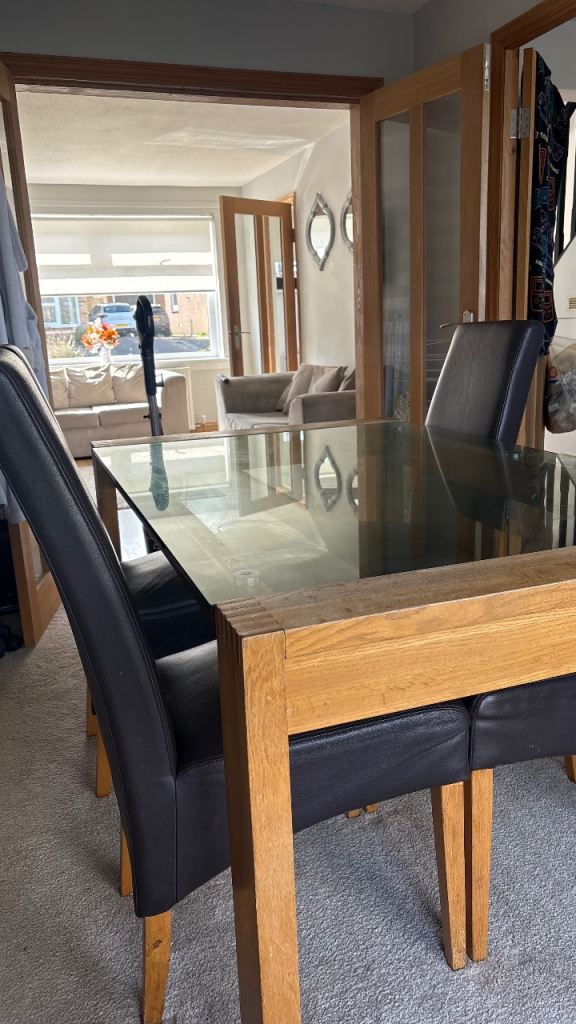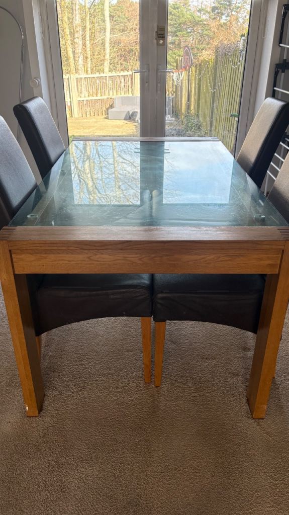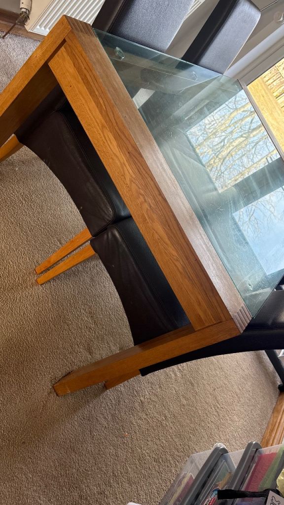 Posting for 13+ yearsSolid Oak Wood and Glass Dining Table