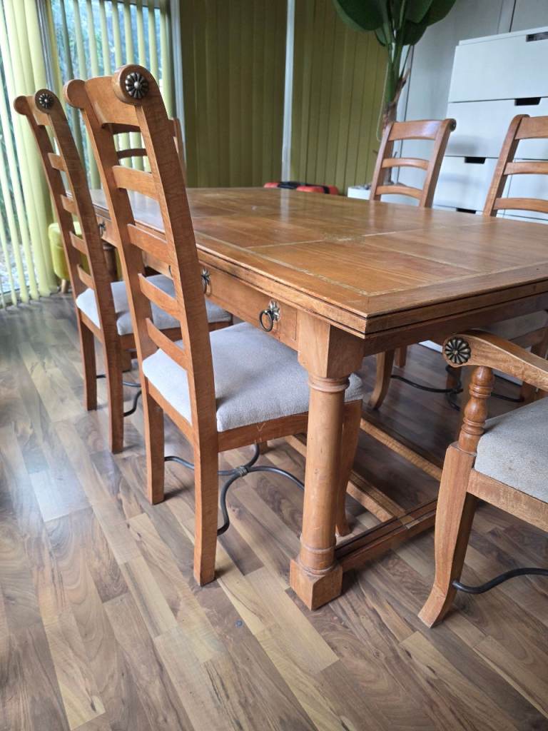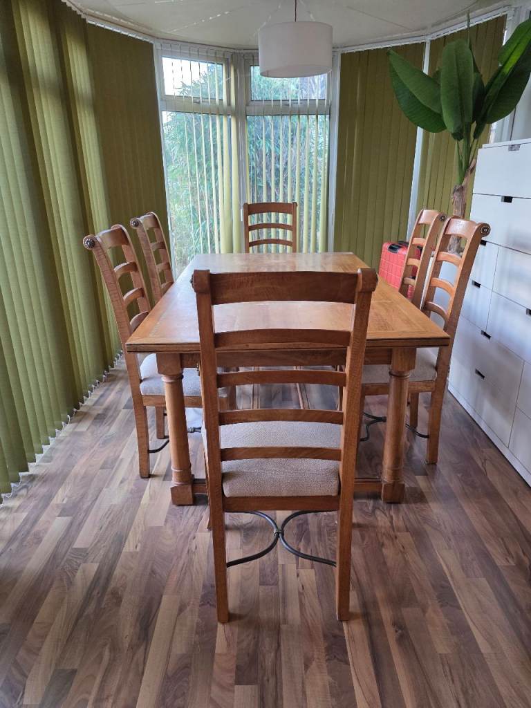 Solid Wood Dining Room Table + 6 Matching Chairs