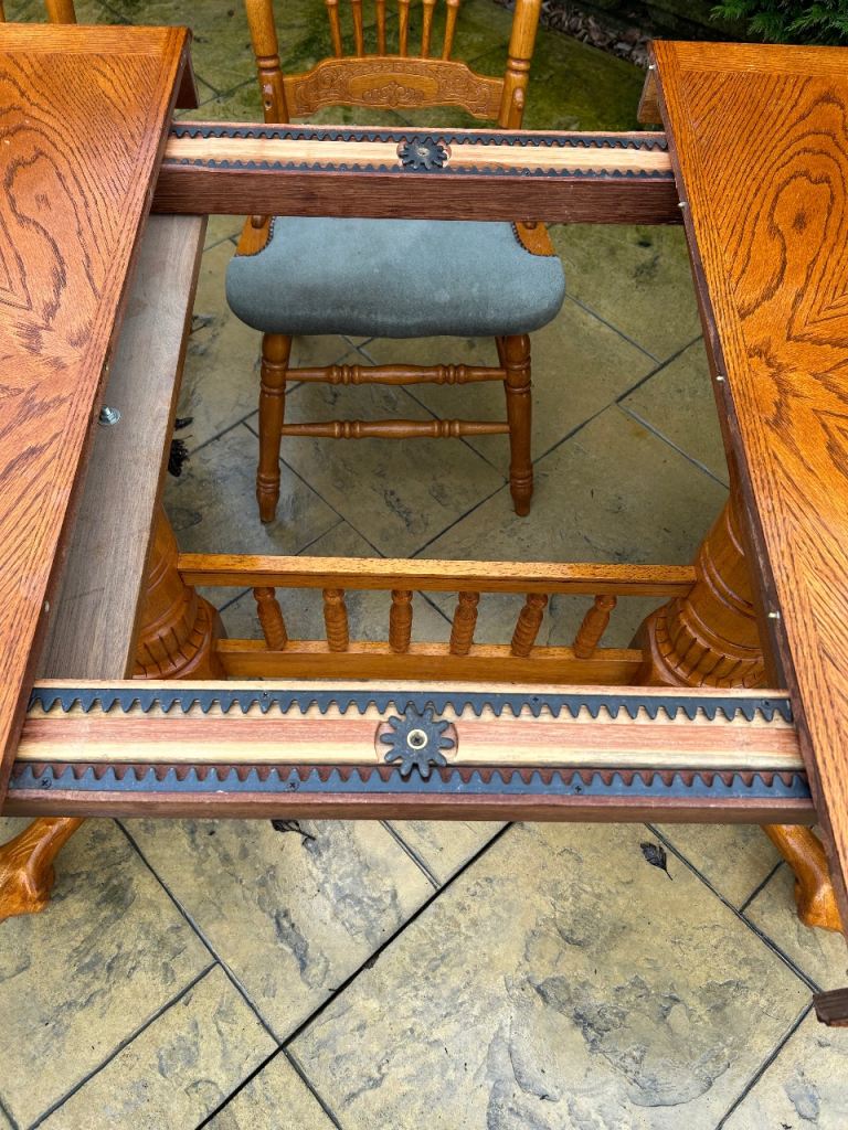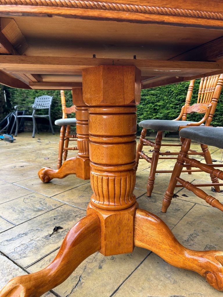 Beautiful solid wood dining room table and chairs. Too could do with sanding and re-varnishing, or painted shabby chic etc