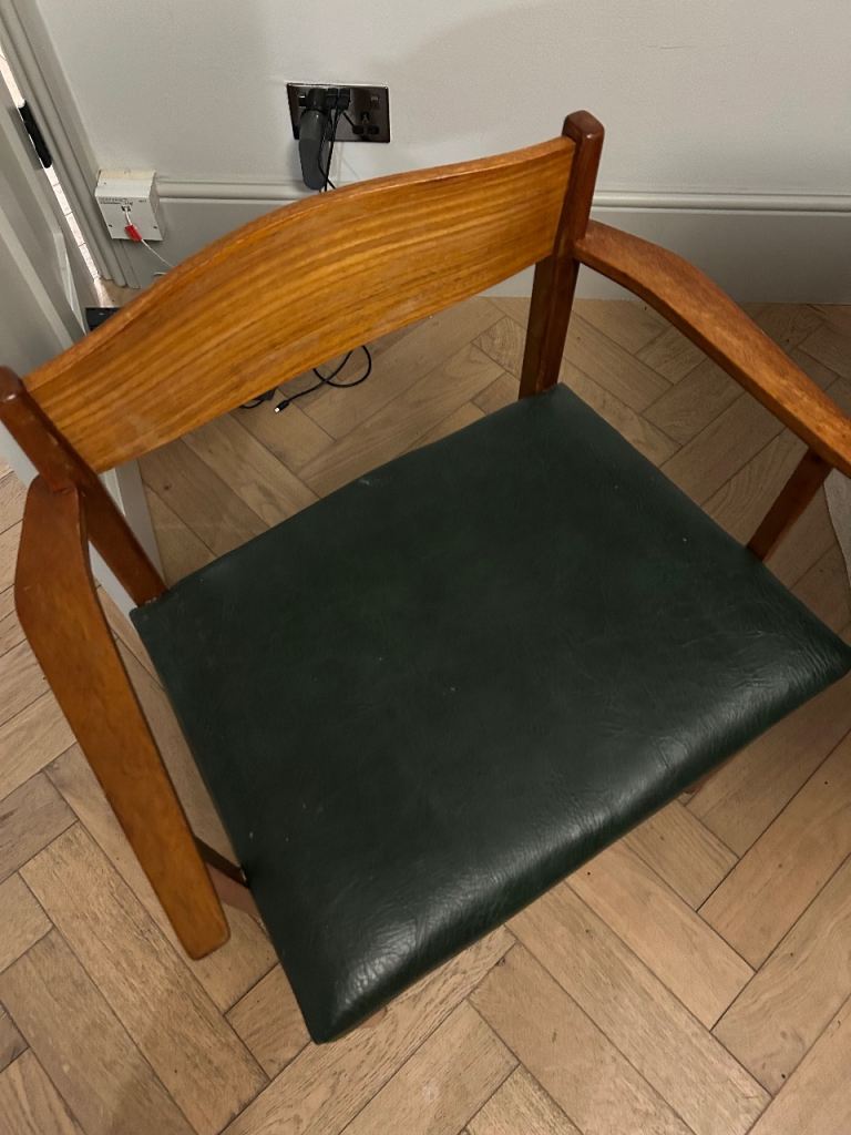 Comfortable chairs with dark green upholstered seats.