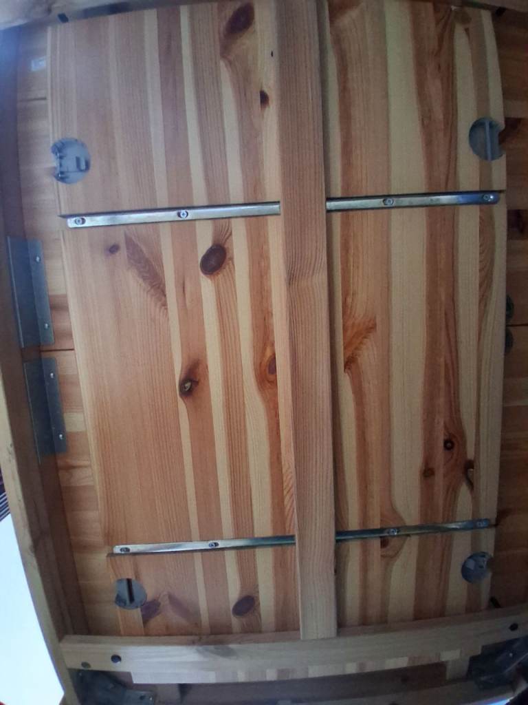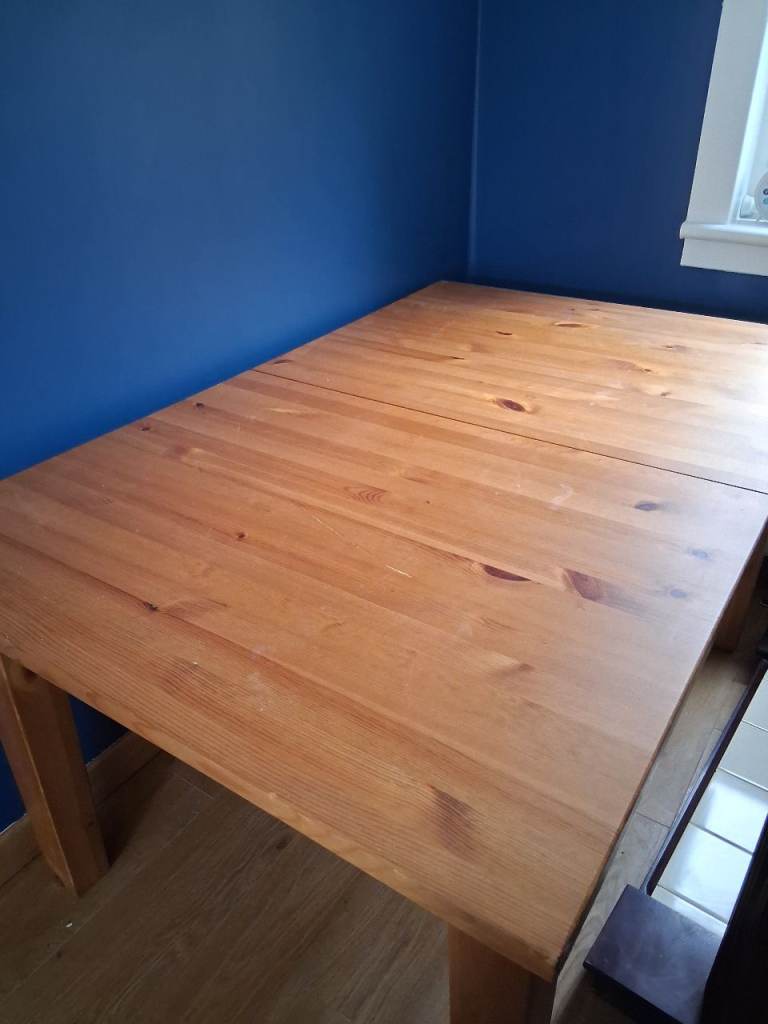 Extendable dining table. Pictured as smaller size, would easily seat 8 people when extended.