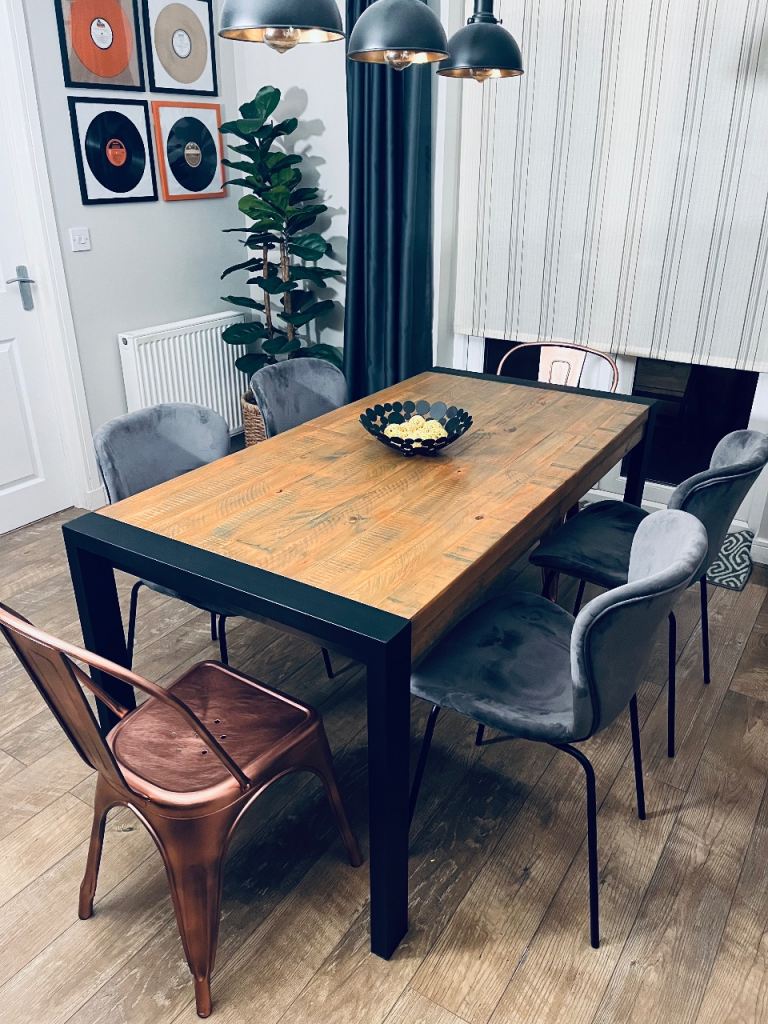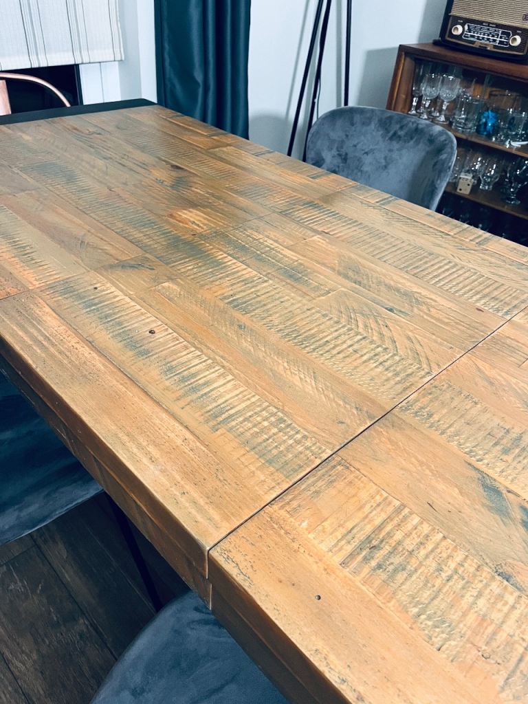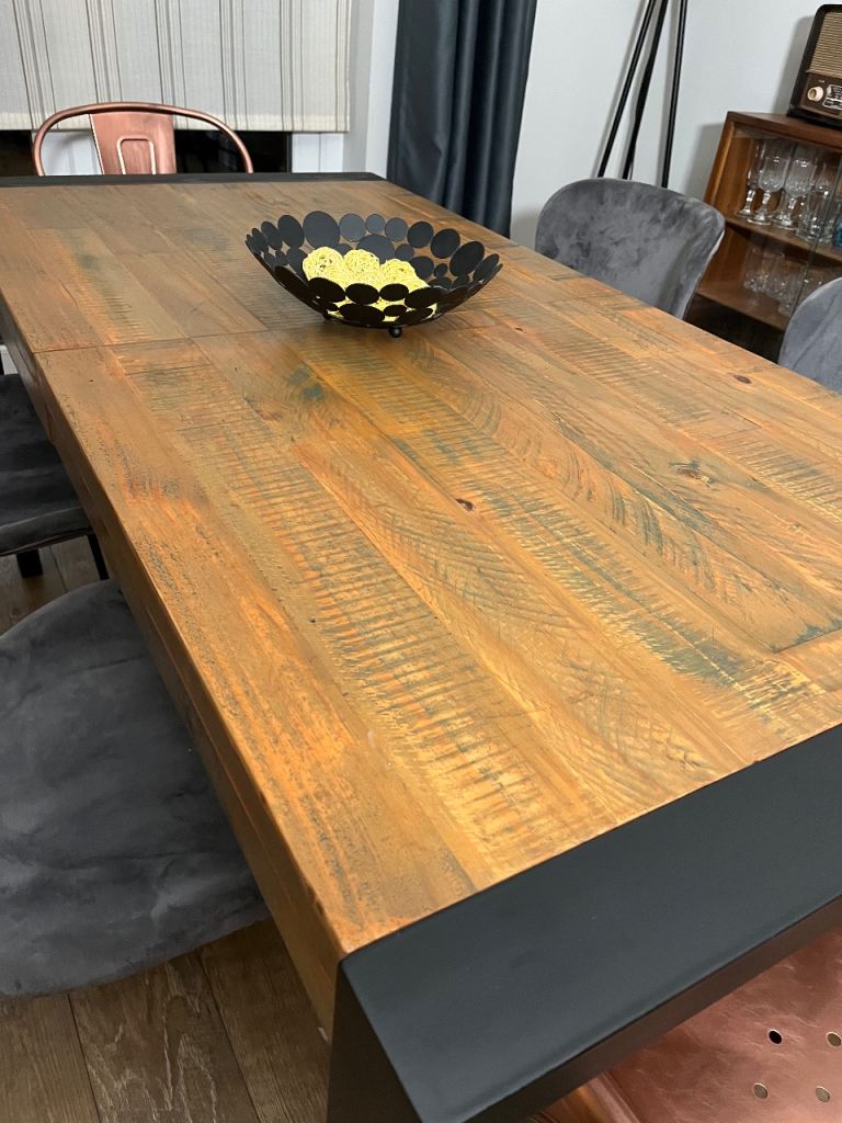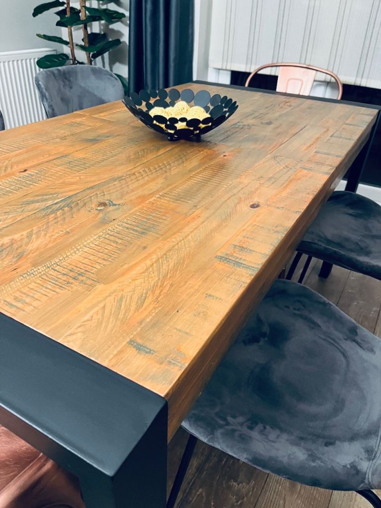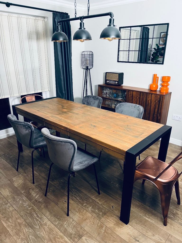 • Solid EXTENDABLE dining table with black Matt metal legs.