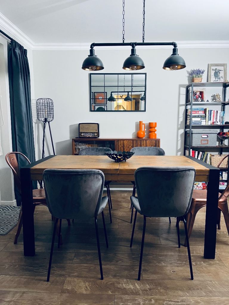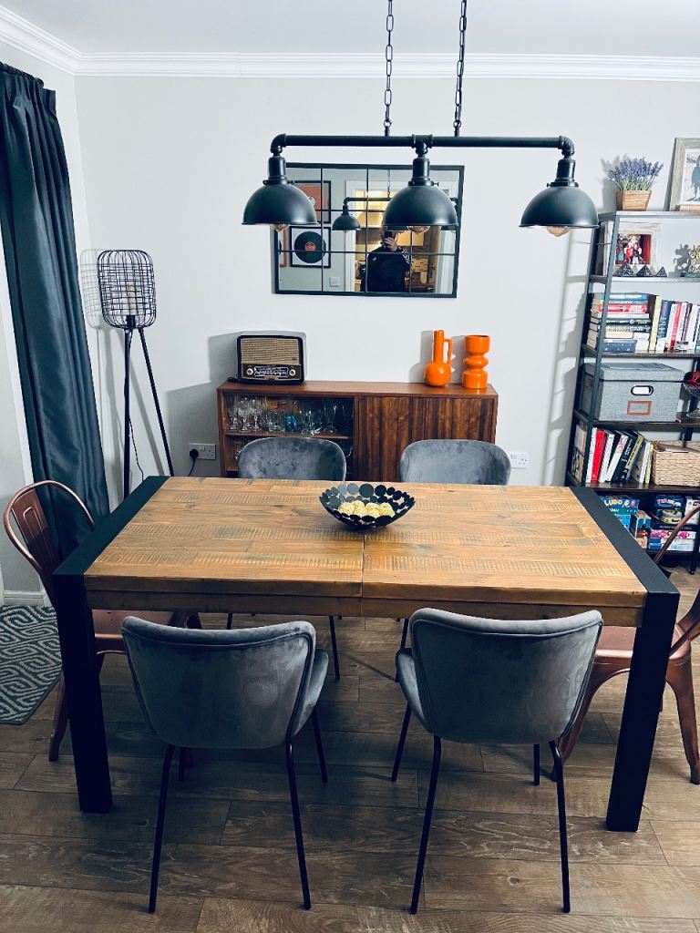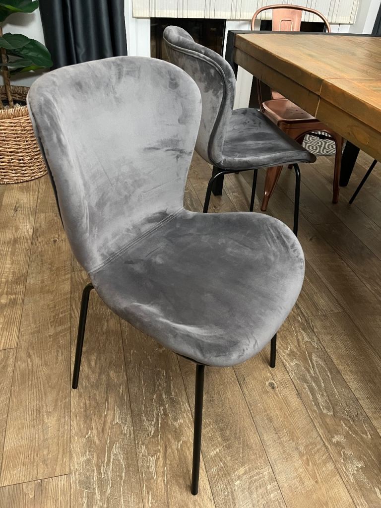 • 4 Matching Grey velvet Upholstered Chairs – Stylish, sturdy, and comfortable. These chairs perfectly complement the table’s sleek aesthetic.