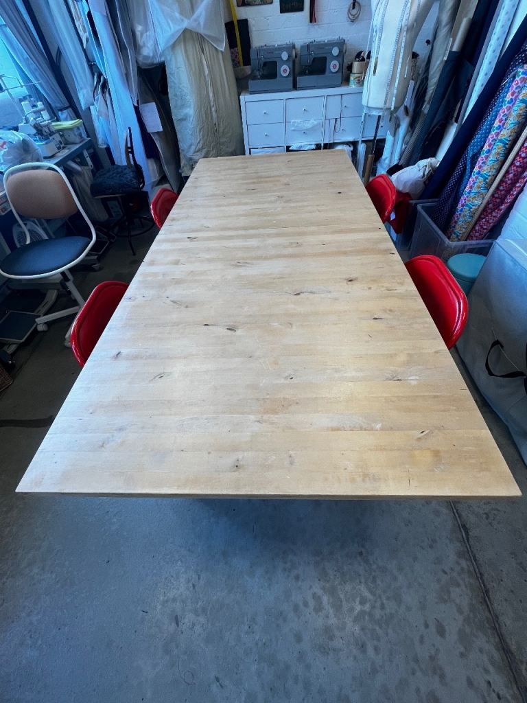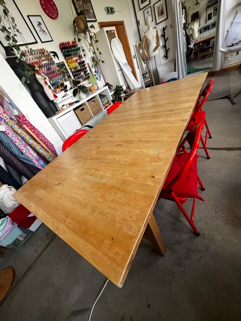 The table is made entirely of solid oak—no veneer, foil, or plastic.