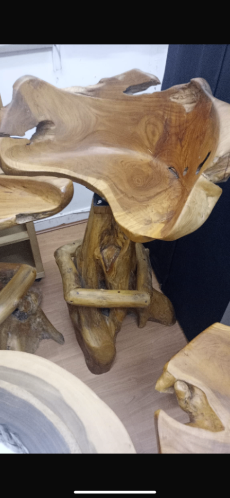 Posting for 6+ yearsTeak root table 2 ber stools and coffee table