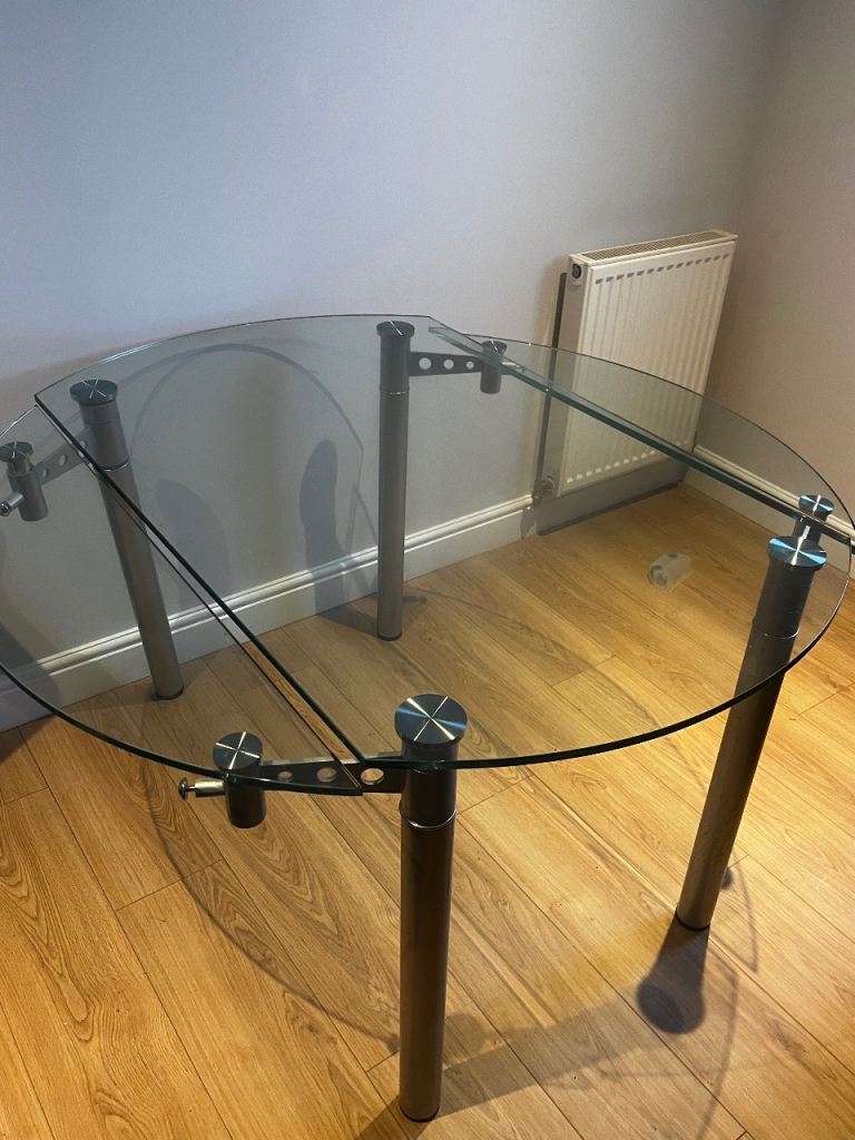 Tempered glass dining table with chrome legs