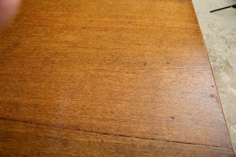 In good condition for its age with some scratches and small indentations throughout, but no cup rings. The original winder is missing, so a previous owner has replaced this with a more modern one which works fine. The wind out mechanism works as it should and all castors are present.