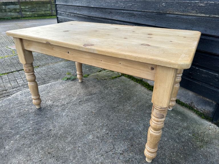Vintage retro wooden pine farmhouse kitchen dining table mid century modern