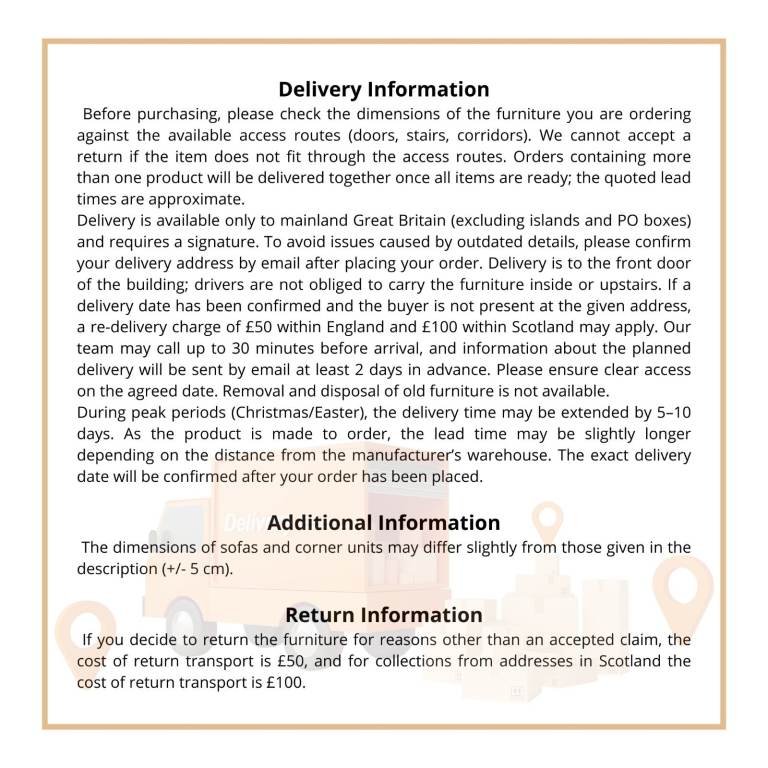 We are a UK registered company with over 8 years of experience supplying quality furniture with clear terms and full documentation.