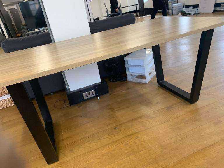 Wood Oak Office Desk Table With Black Industrial Legs Square legs Dining table