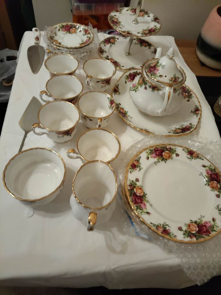 2 Large Cake and 4 Smaller Fine Bone China Plates of Similar Rose Pattern for Only £8.00