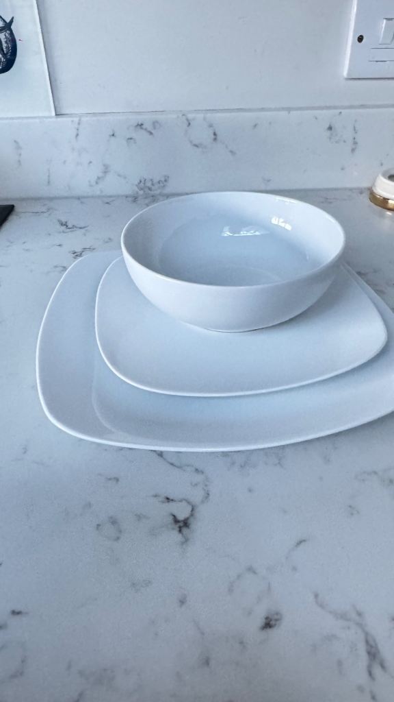 2 Serving Dishes/Plates: Red Ceramic Dish £3.00; White Porcelain Dish £2.00