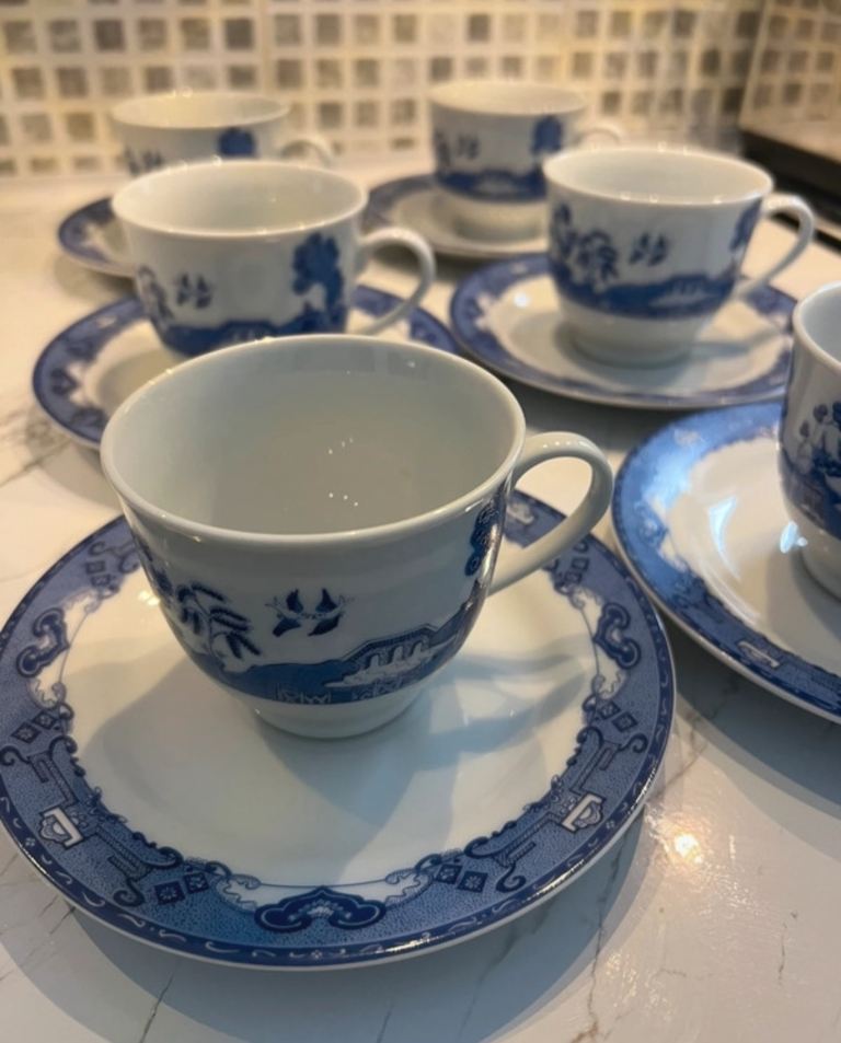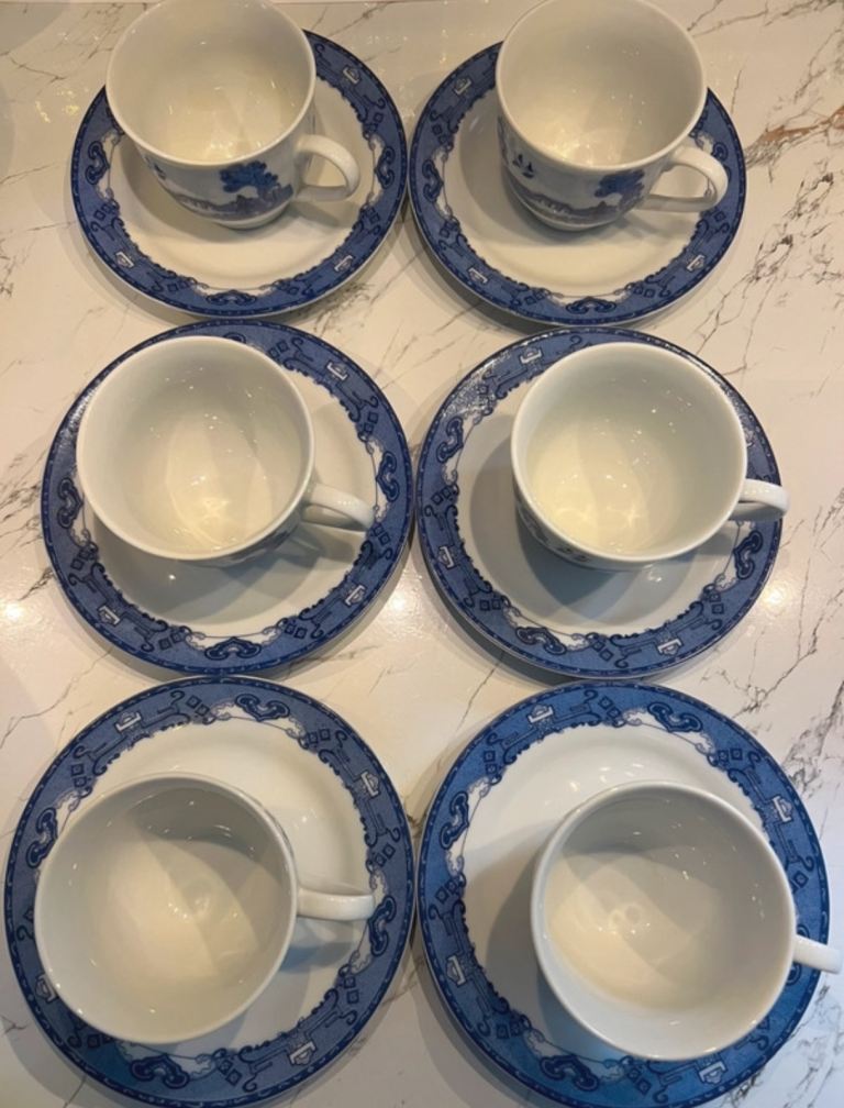 6 sets Vintage Royal Norfolk Blue and White Cups & sauser