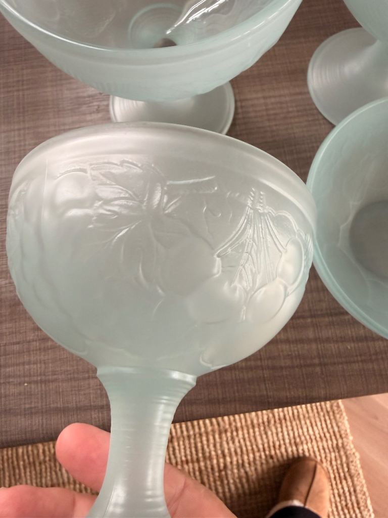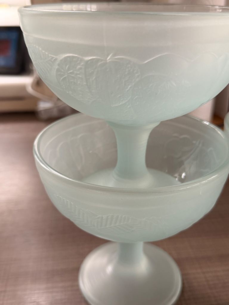 6 Vintage Frosted Blue Sundae Dishes