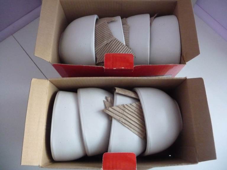 I am gradually clearing storage cupboards etc to sell many items that are surplus to requirements. The bowls here were purchased by my wife at least ten years ago. They have sat stored away in their boxes and never used.