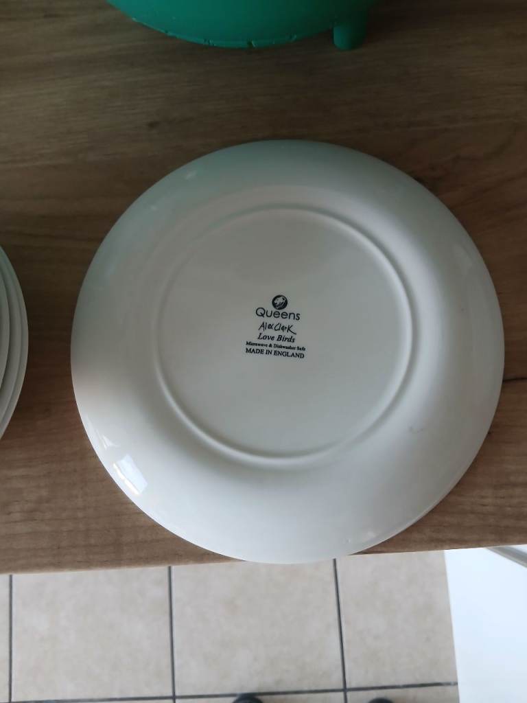 Set of 7 side Plates with birdhouse and heart design by Alex Clark.