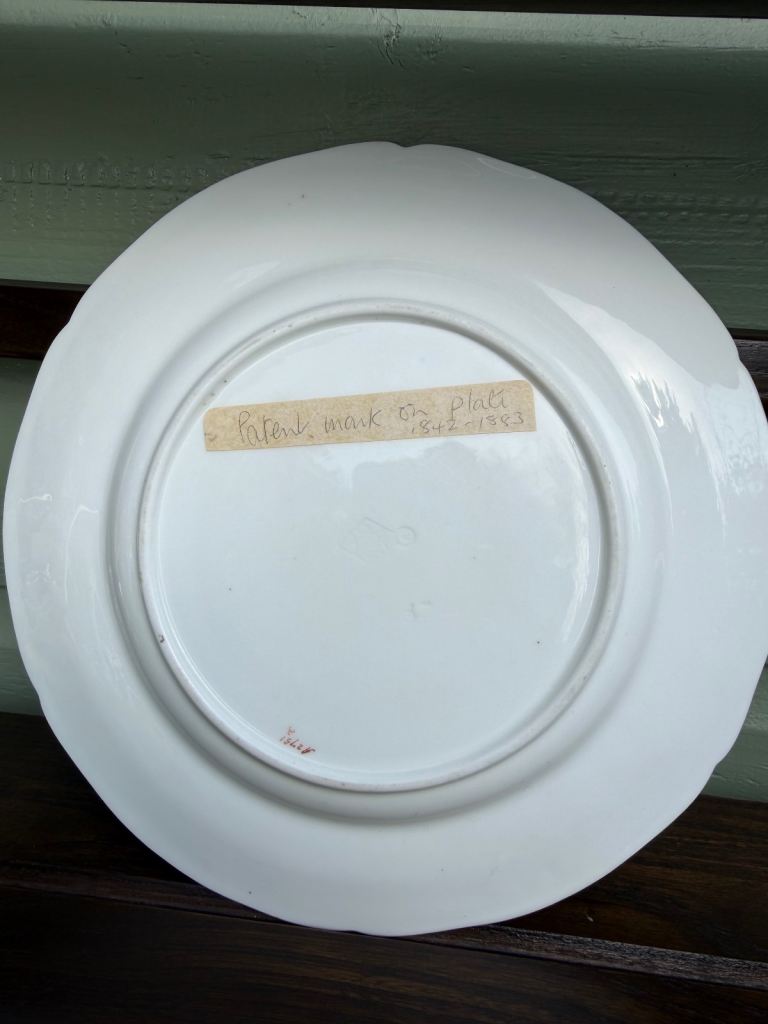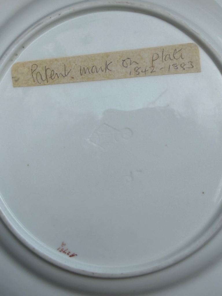 This plate is similar to other antique Minton patterns however we haven't definitively identified it. It has the impressed MINTON mark