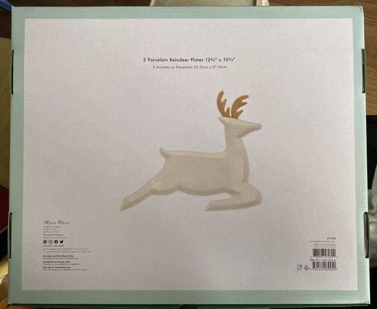Posting for 7+ yearsBNIB porcelain reindeer plates dishes Christmas serving buffet new in box 32.25cm x 27.25cm