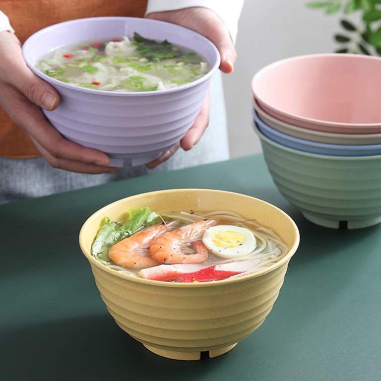【Multiple Uses Unbreakable wheat straw bowls are deep enough for soup, pasta, cereal, salad, fruit, rice, and noodle without splashing out. Great for parties, picnic, camping, and everyday meals at home, school, office, outdoor or traveling. A good choice for business promotional gifts and Christmas gifts!