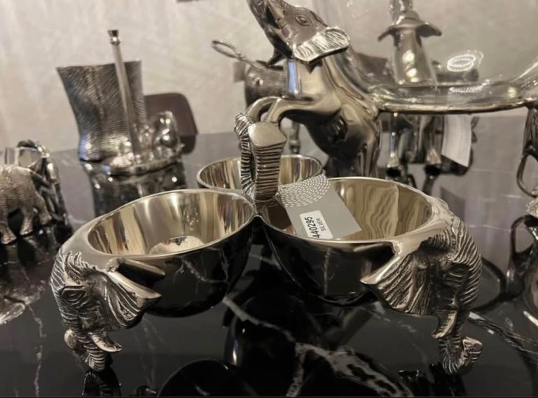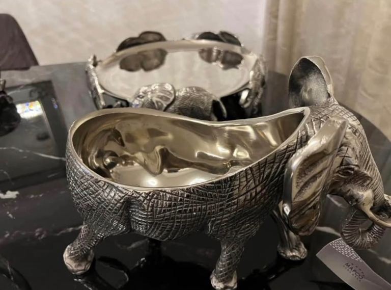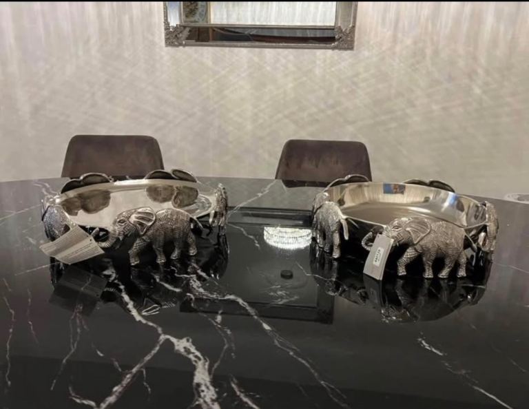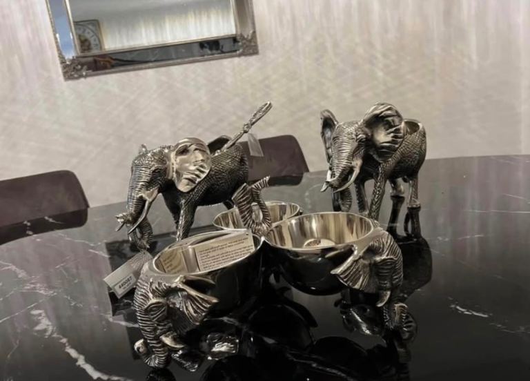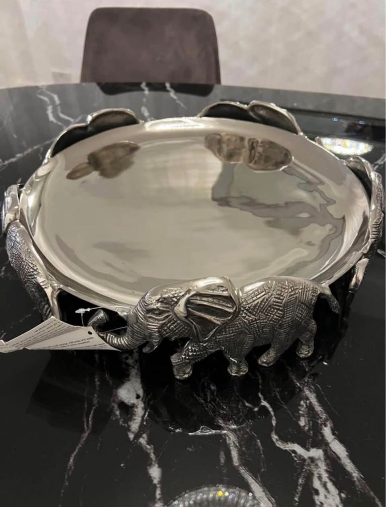 Absolutely stunning brand new silver serving set, never used. This is a full matching collection with beautiful detailed craftsmanship, including elegant elephant designs that make it truly unique and eye-catching.