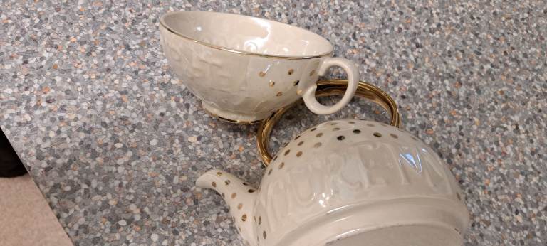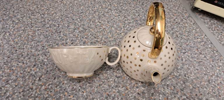 Cup and teapot .."it reads ::(your my cup of tea ) £18 ..also Royal Worcester toast rack .parte- toast .19cm x 8cm .£18
