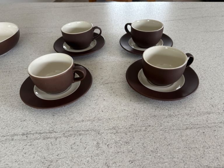 Cups and saucer set and serving bowls