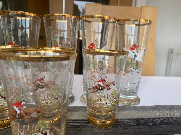 Posting for under a monthDecorative tall and short fix and hounds glasses