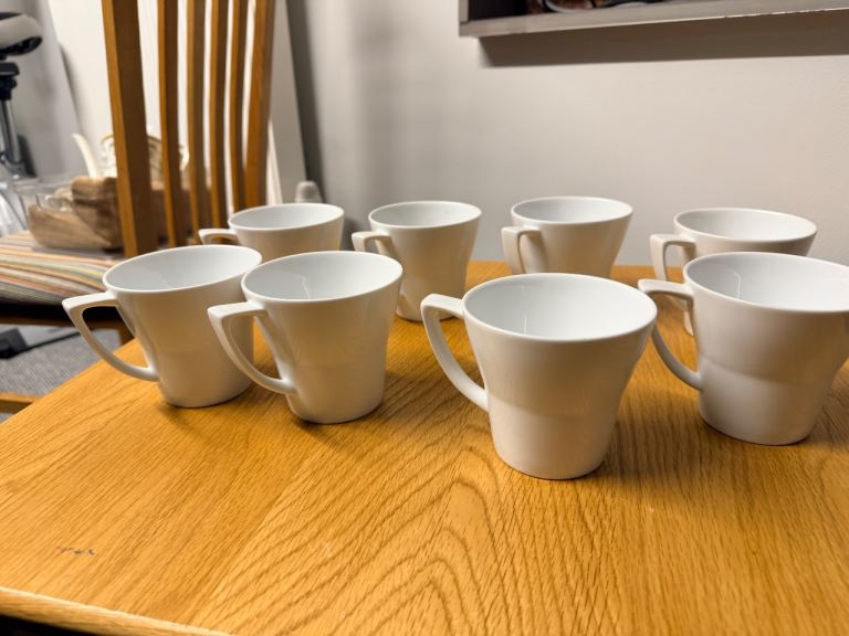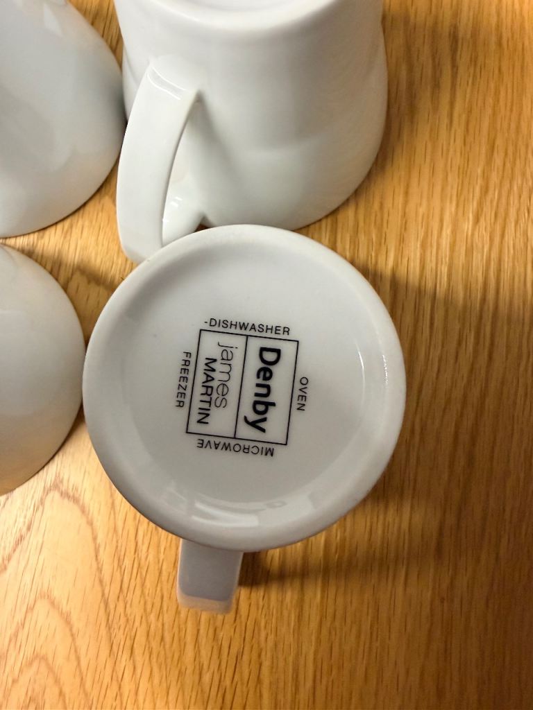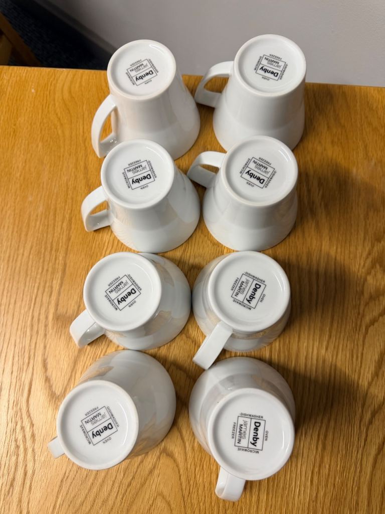 Brand new x 8 Denby white mugs from the James Martin range.
