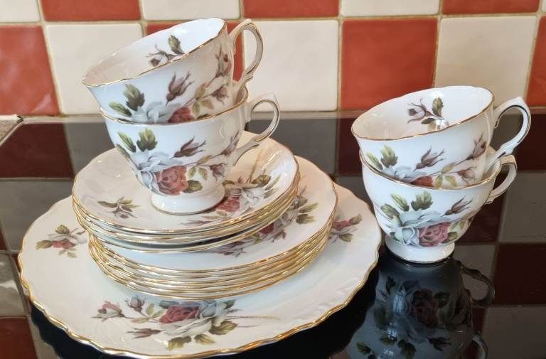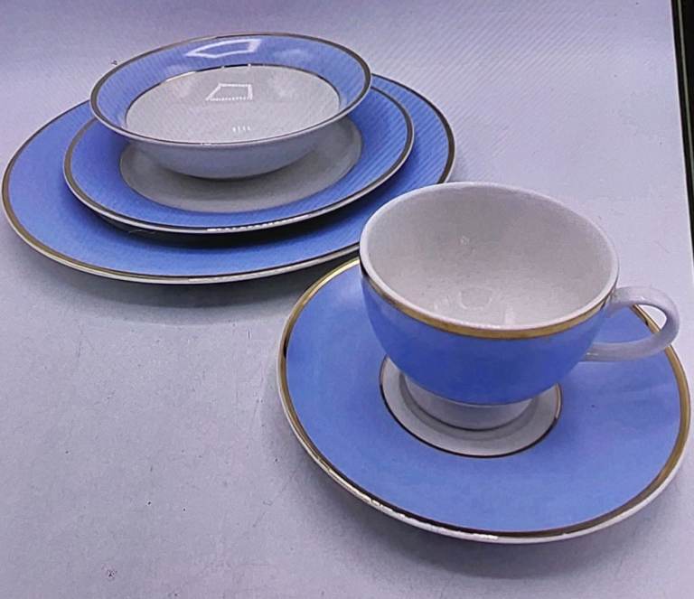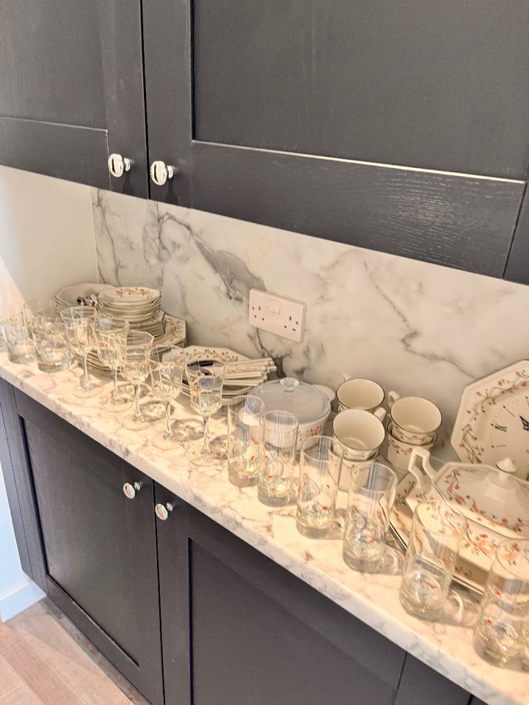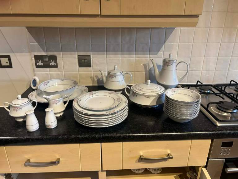 6 piece cutlery, plates, bowls, cups saucers, side plates, vegetable bowl and 2 x large serving plates, clock
