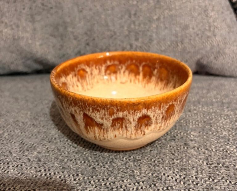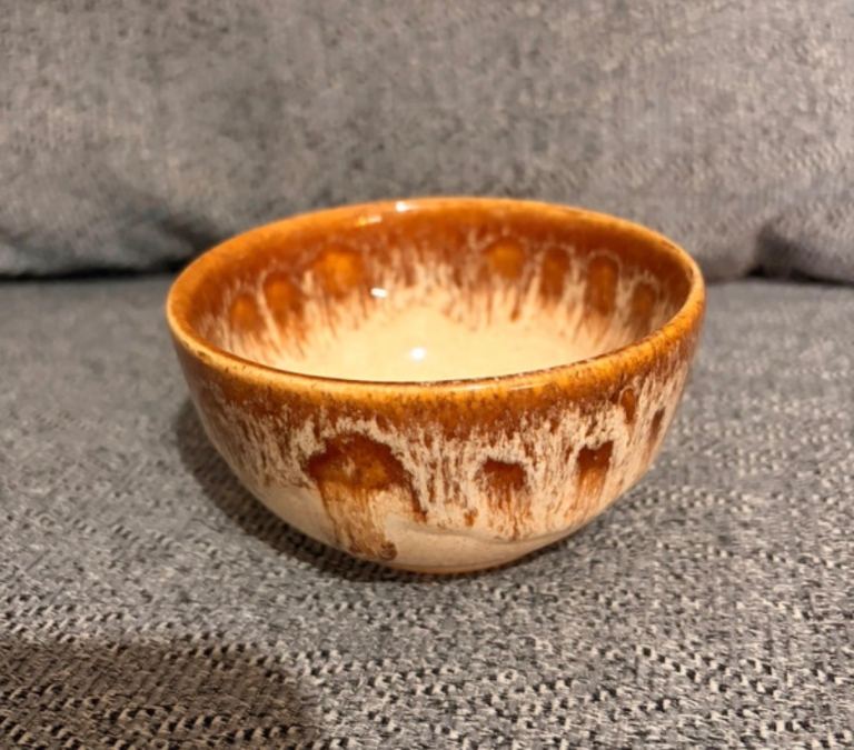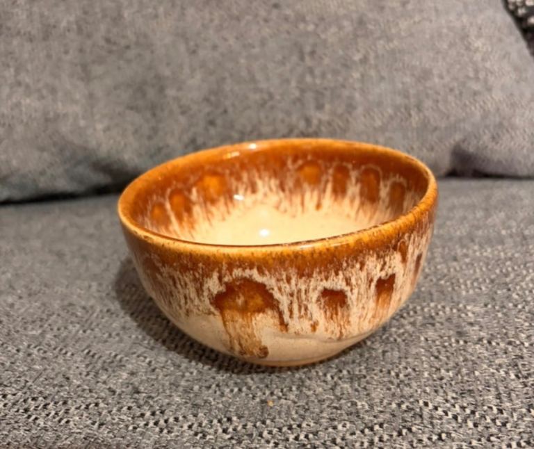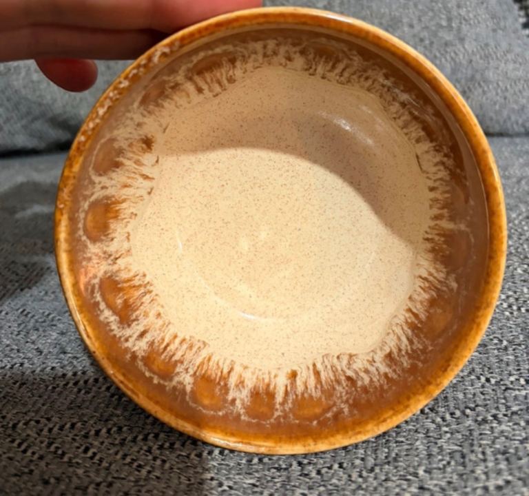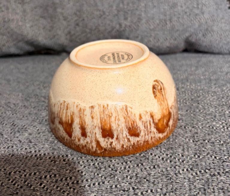 Has a nice brown and cream speckled glaze pattern, looks great on display.